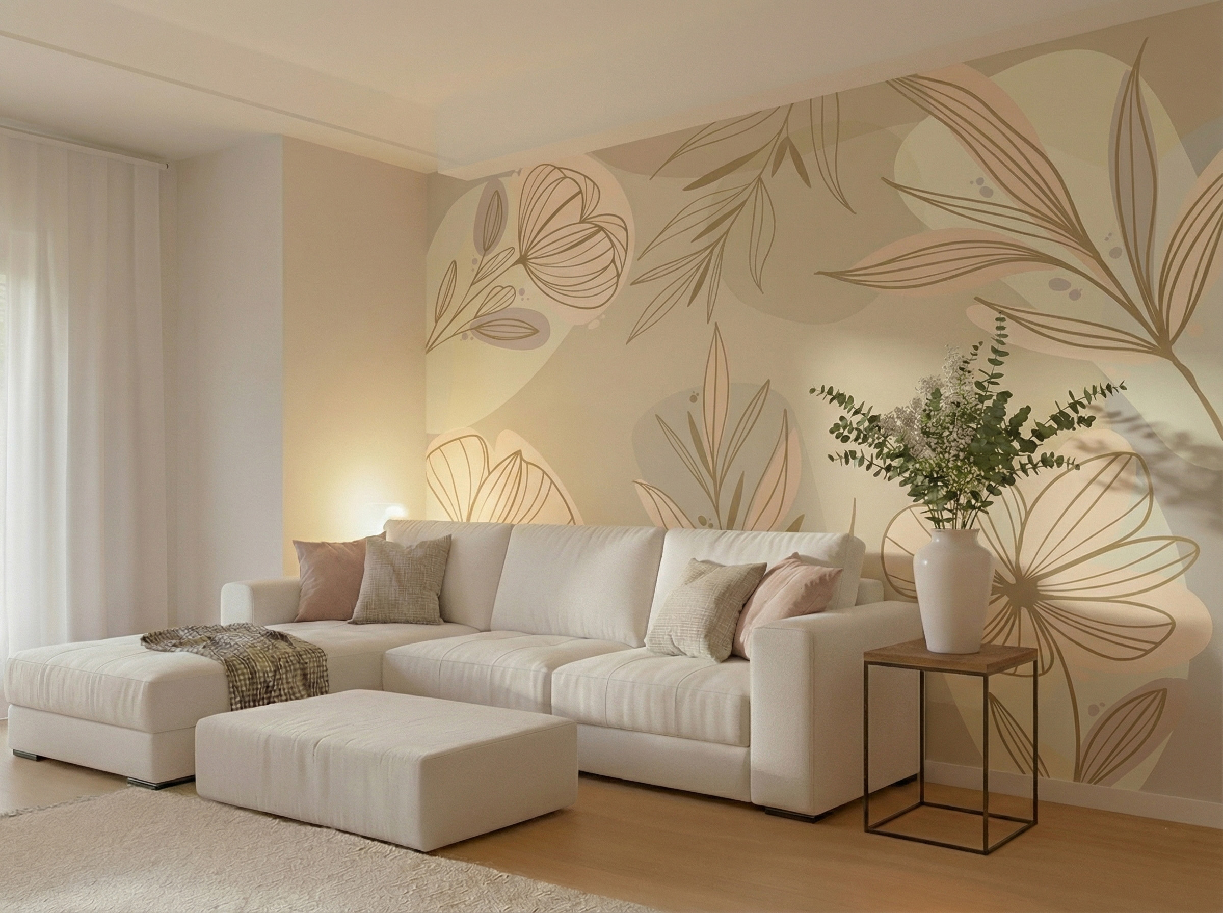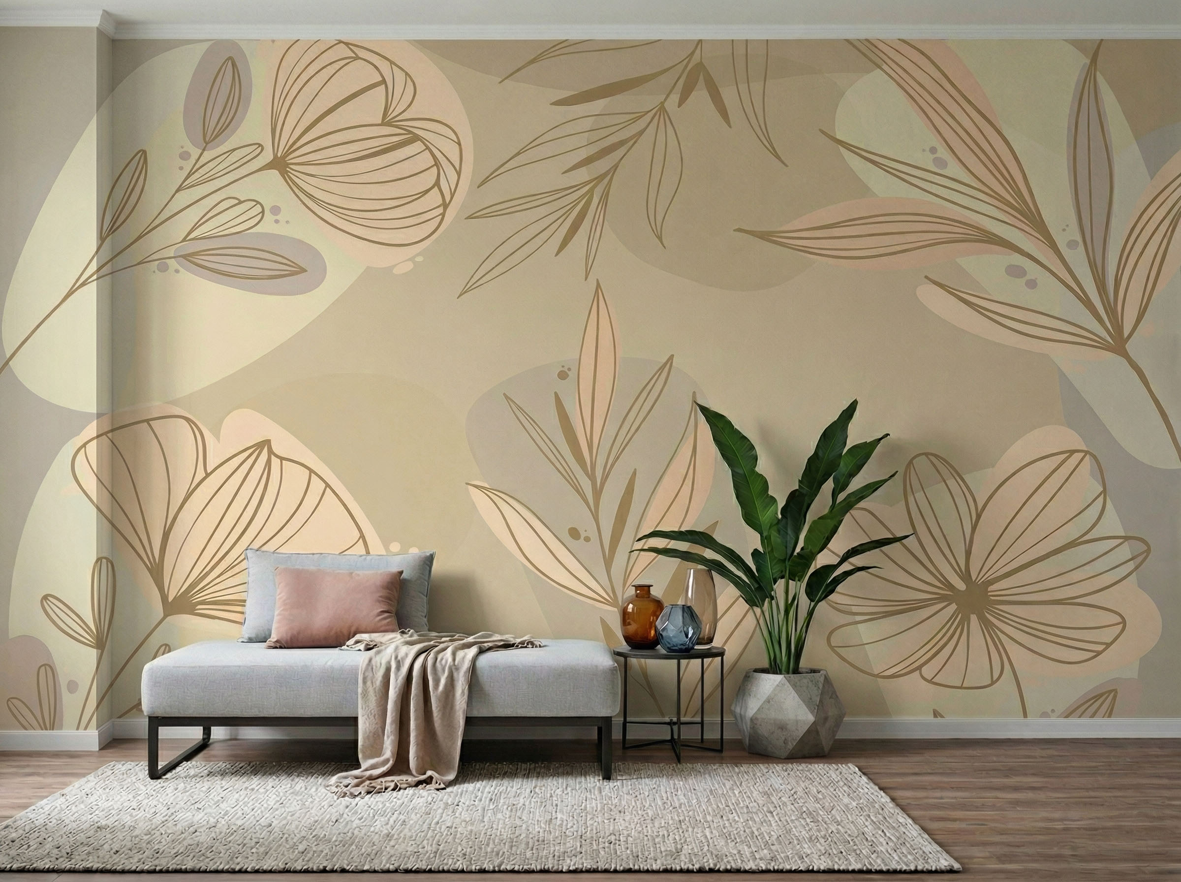 Авторские фотообои SV-005 «Цветы на бежевом» (на заказ)