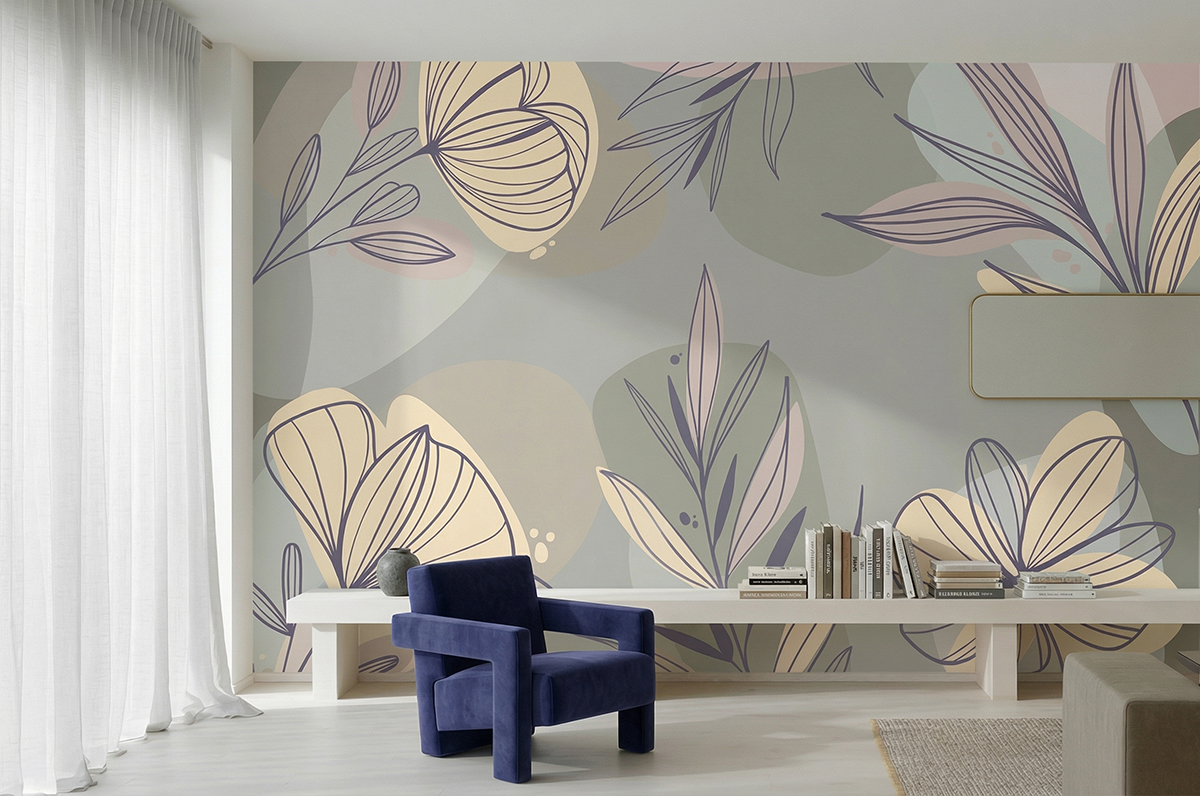 Авторские фотообои SV-006 «Цветы на сером» (на заказ)