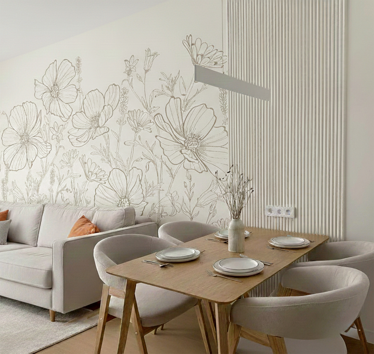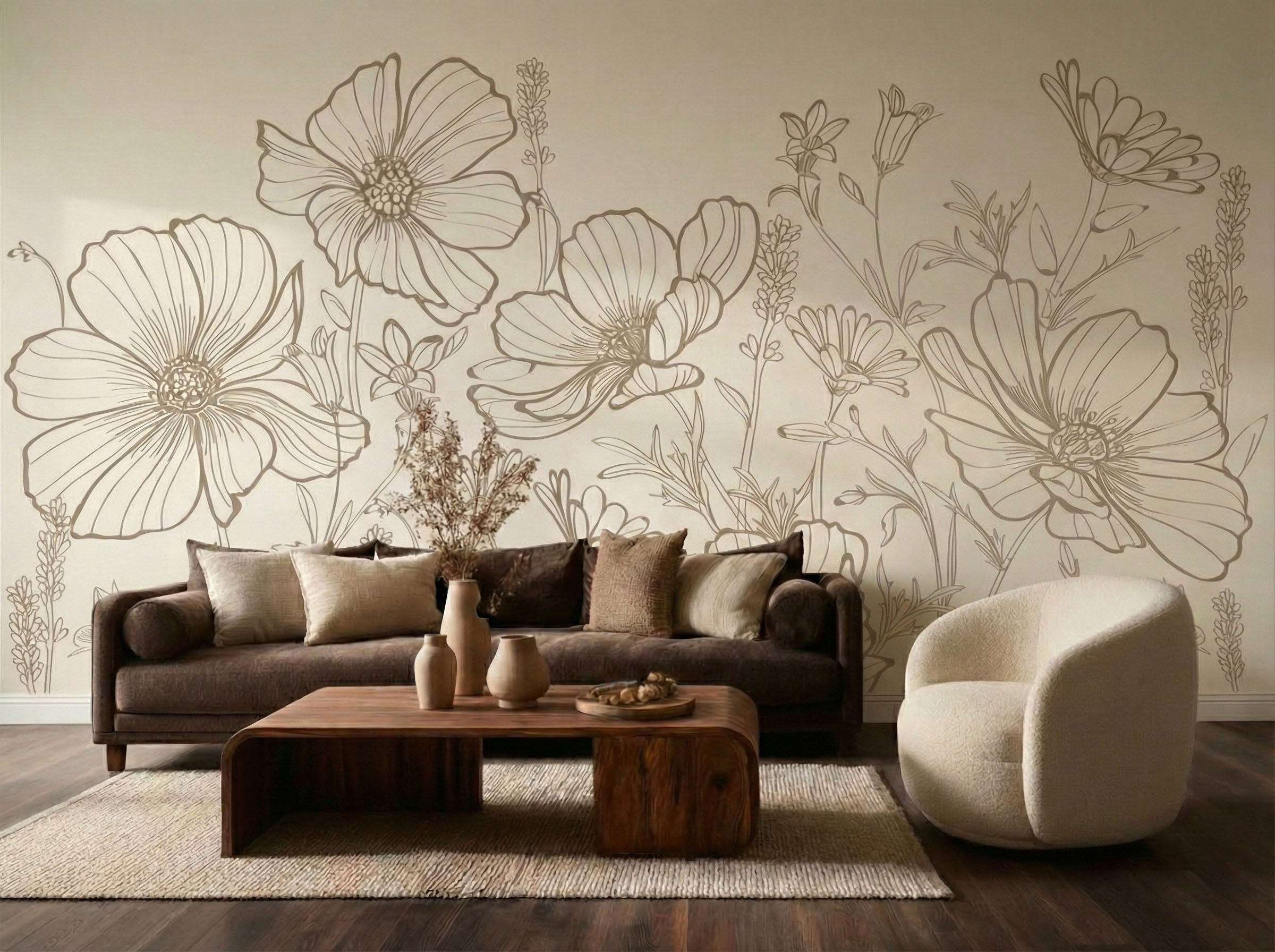 Авторские фотообои SV-012 «Полевые цветы на бежевом» (на заказ)