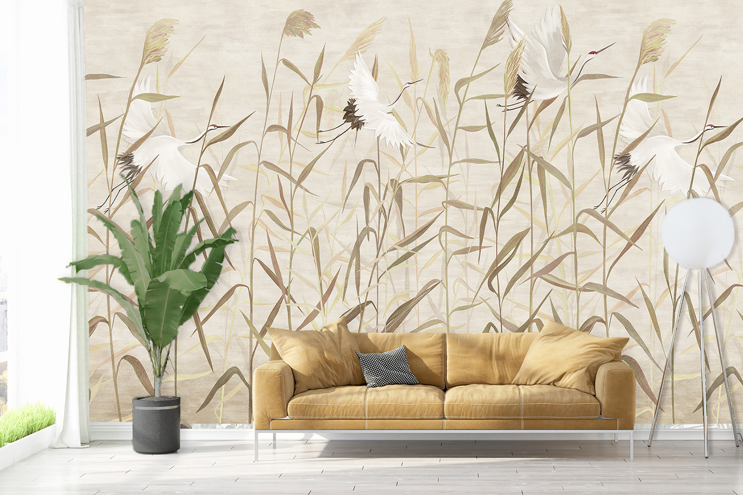 Описание Фотообои "Аисты в тростнике-2, 400х270"