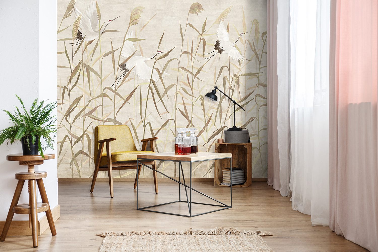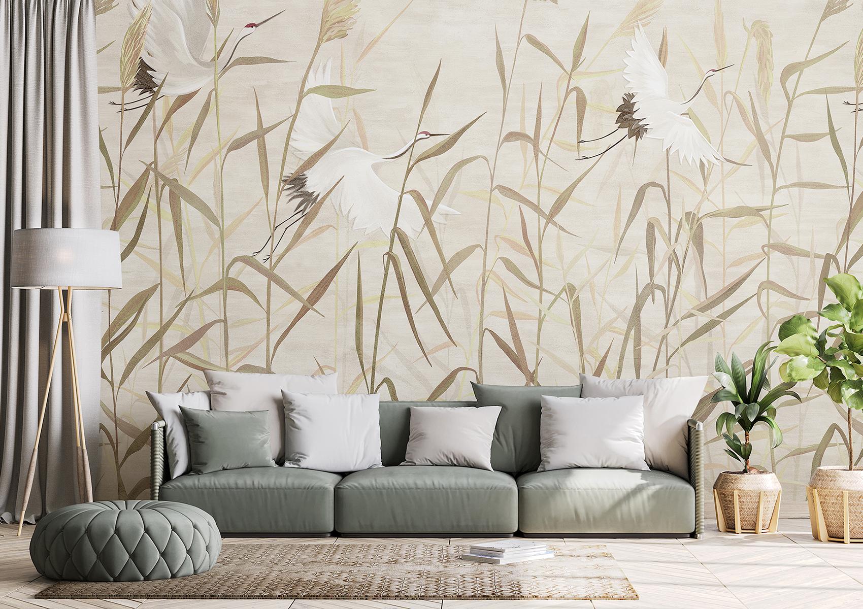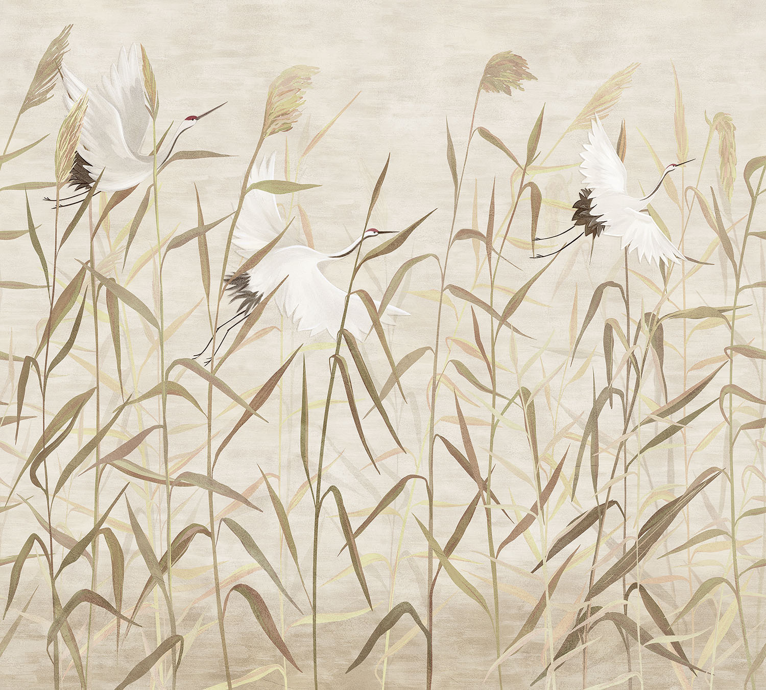 Описание Фотообои "Аисты в тростнике (повторяющиеся) 300х270"