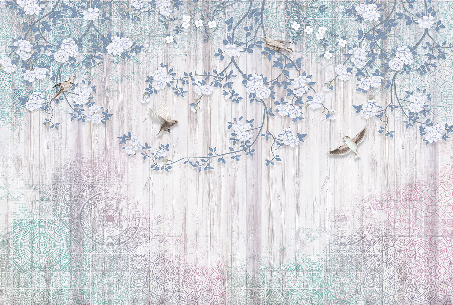 Фотообои Z-379 "Цветущие деревья на деревянном фоне" 400х270