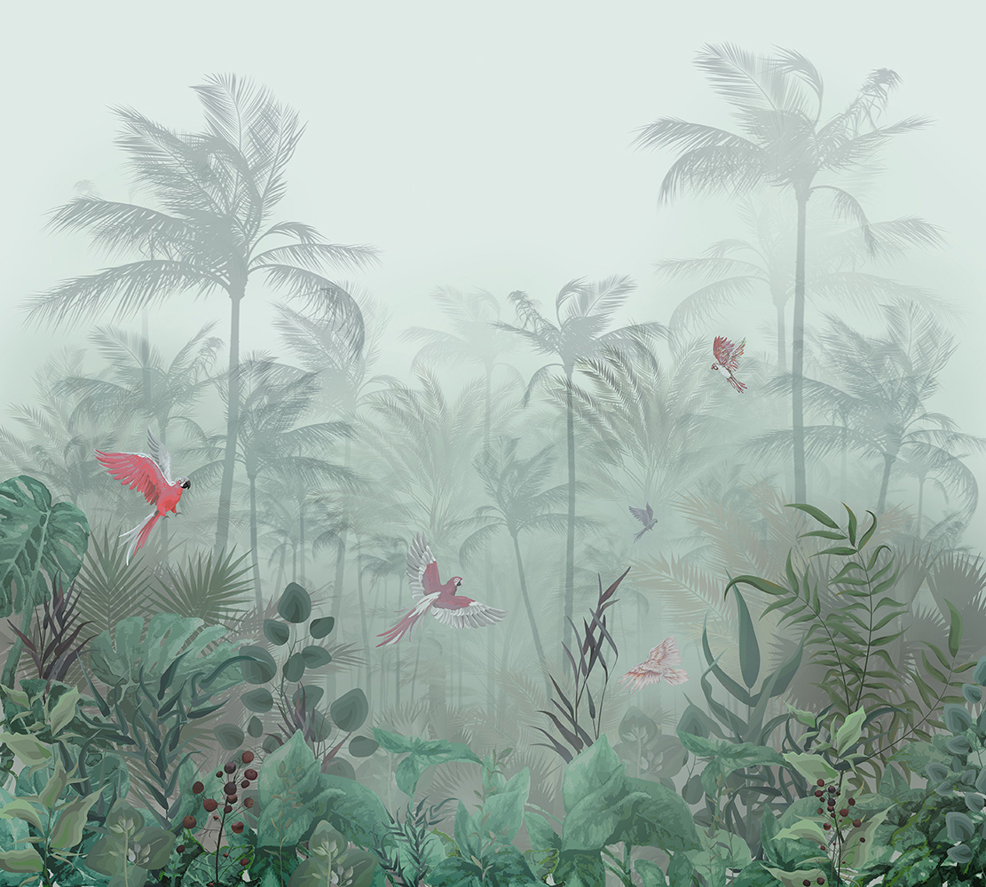 Фотообои T-190 "Попугаи в тропиках" 300х270