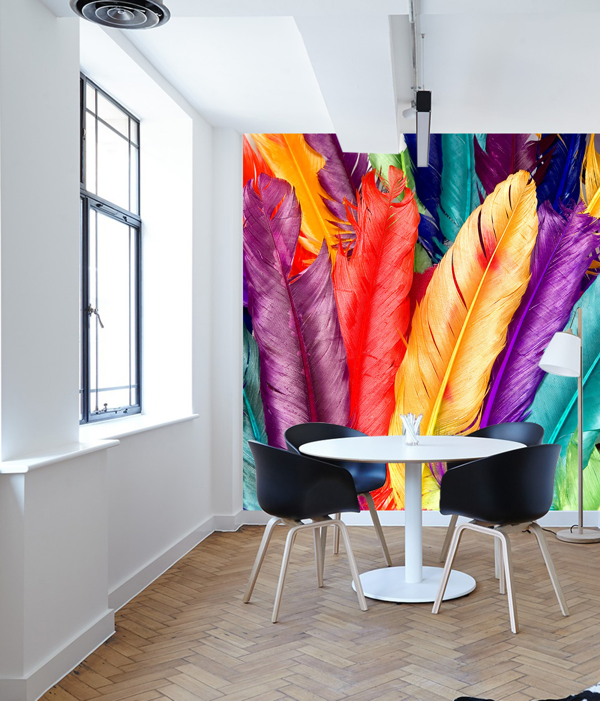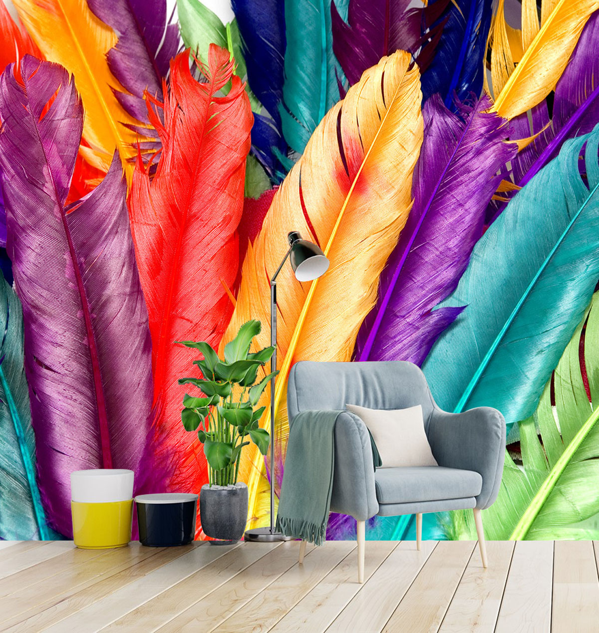 Описание Фотообои T-200 "Разноцветные перья" 300х270