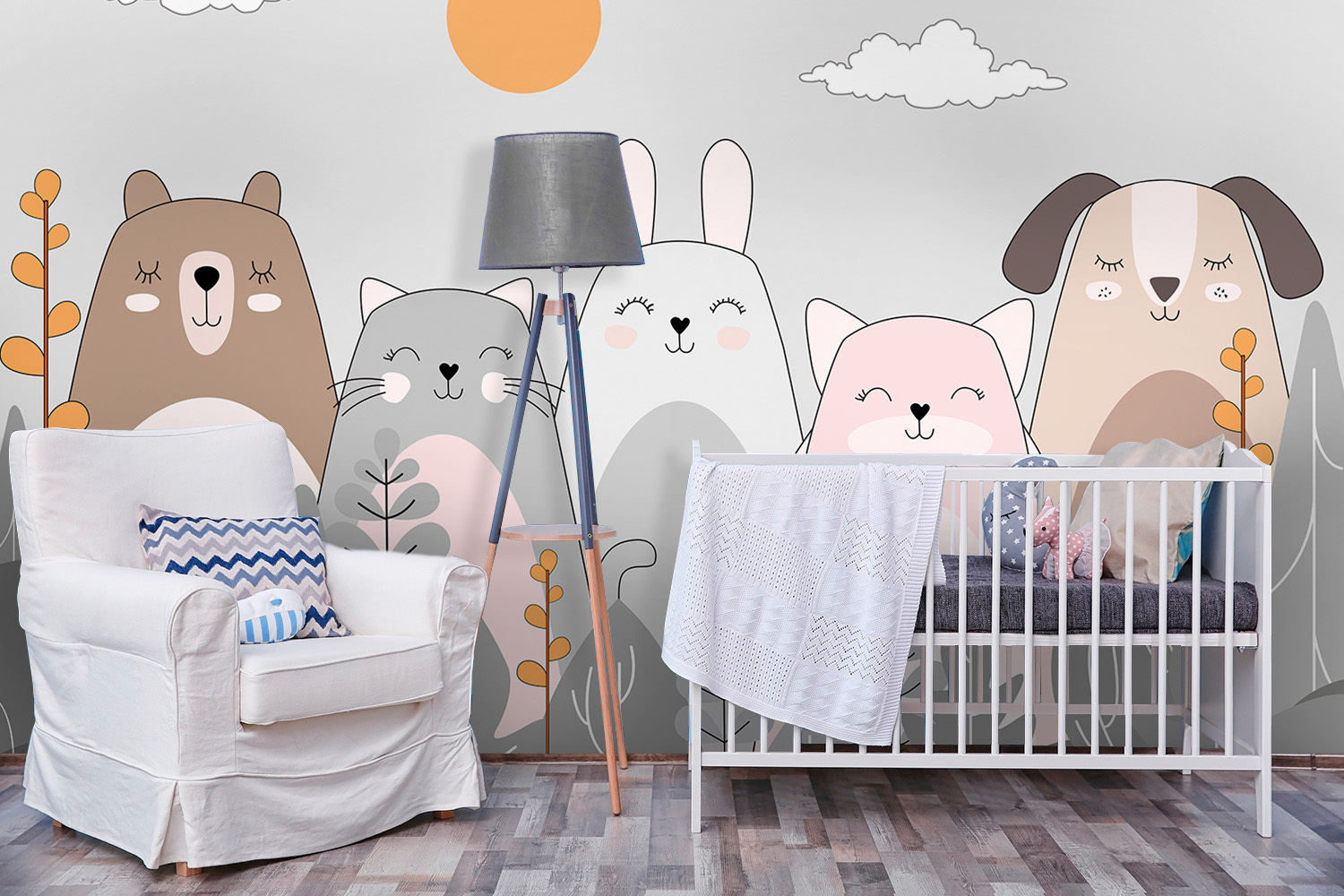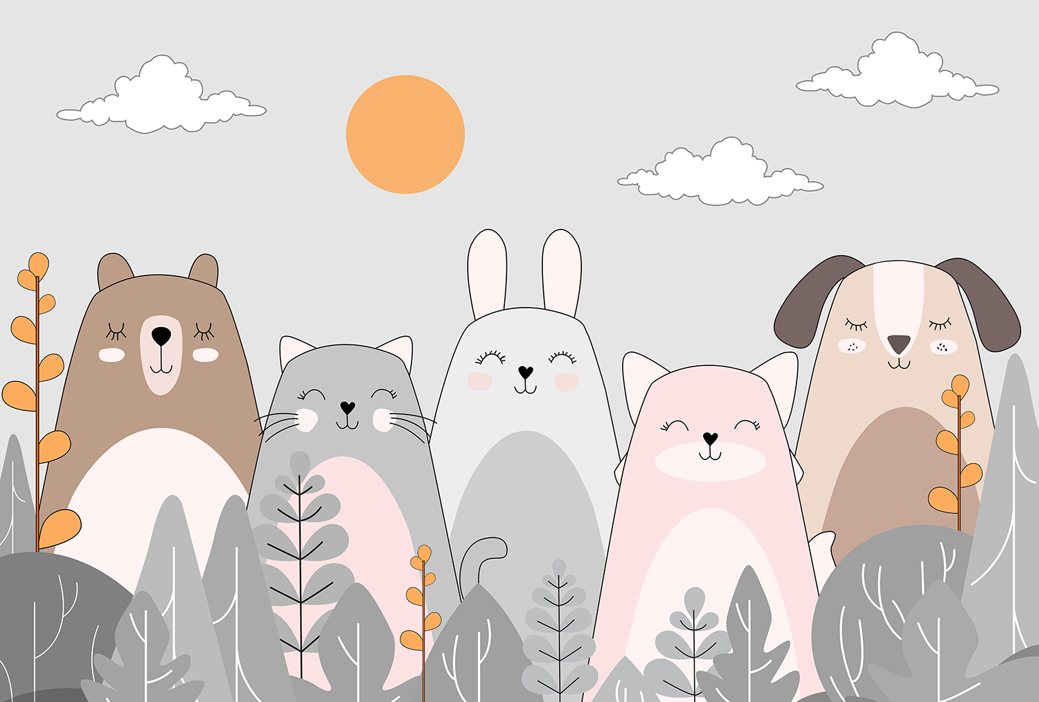 Фотообои F-075 "Милые животные среди деревьев" 400х270