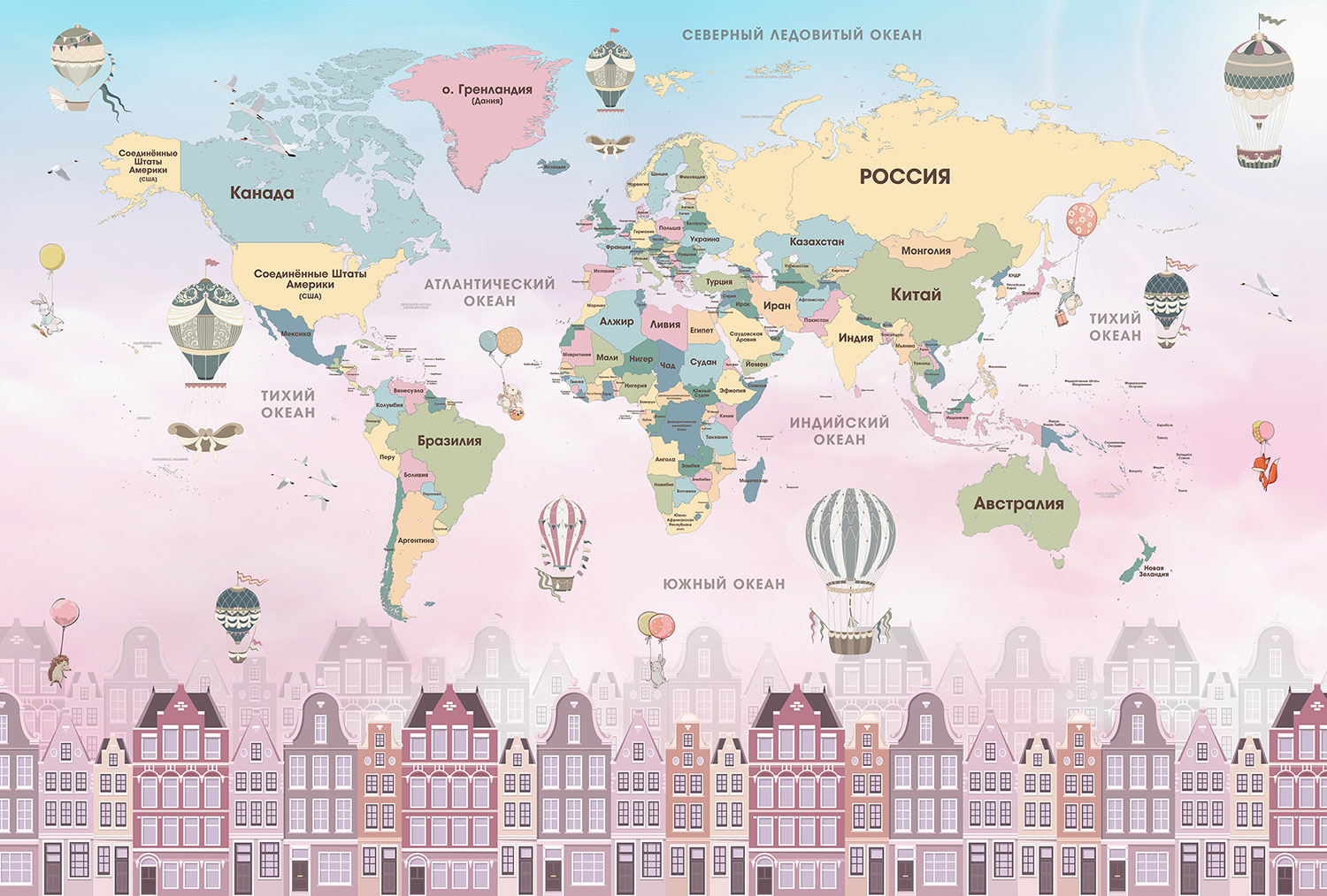 Фотообои F-079 "Детская карта над городом" 400х270 - Отзывы покупателей, пациентов, врачей