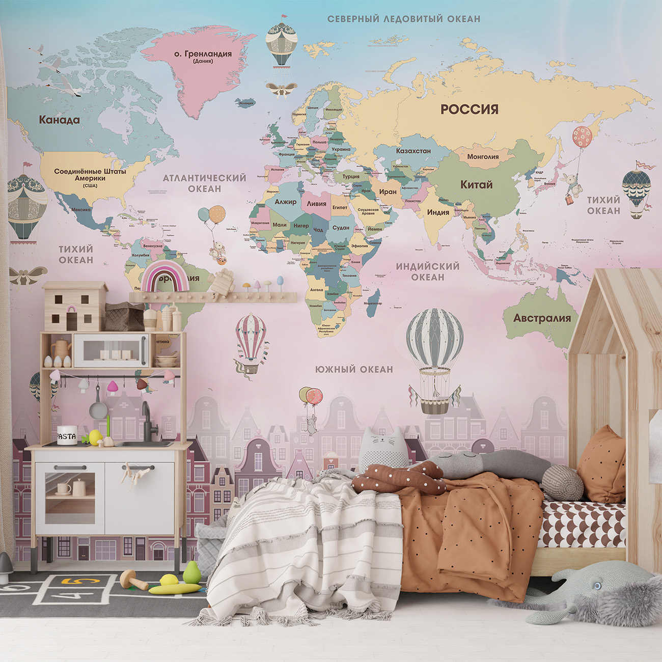 Фотообои F-079 "Детская карта над городом" 400х270