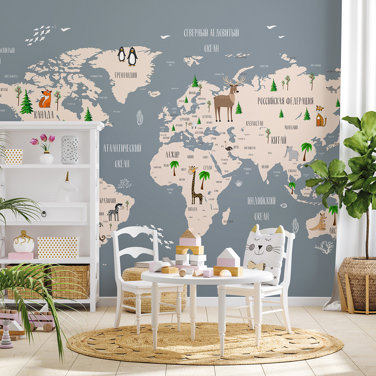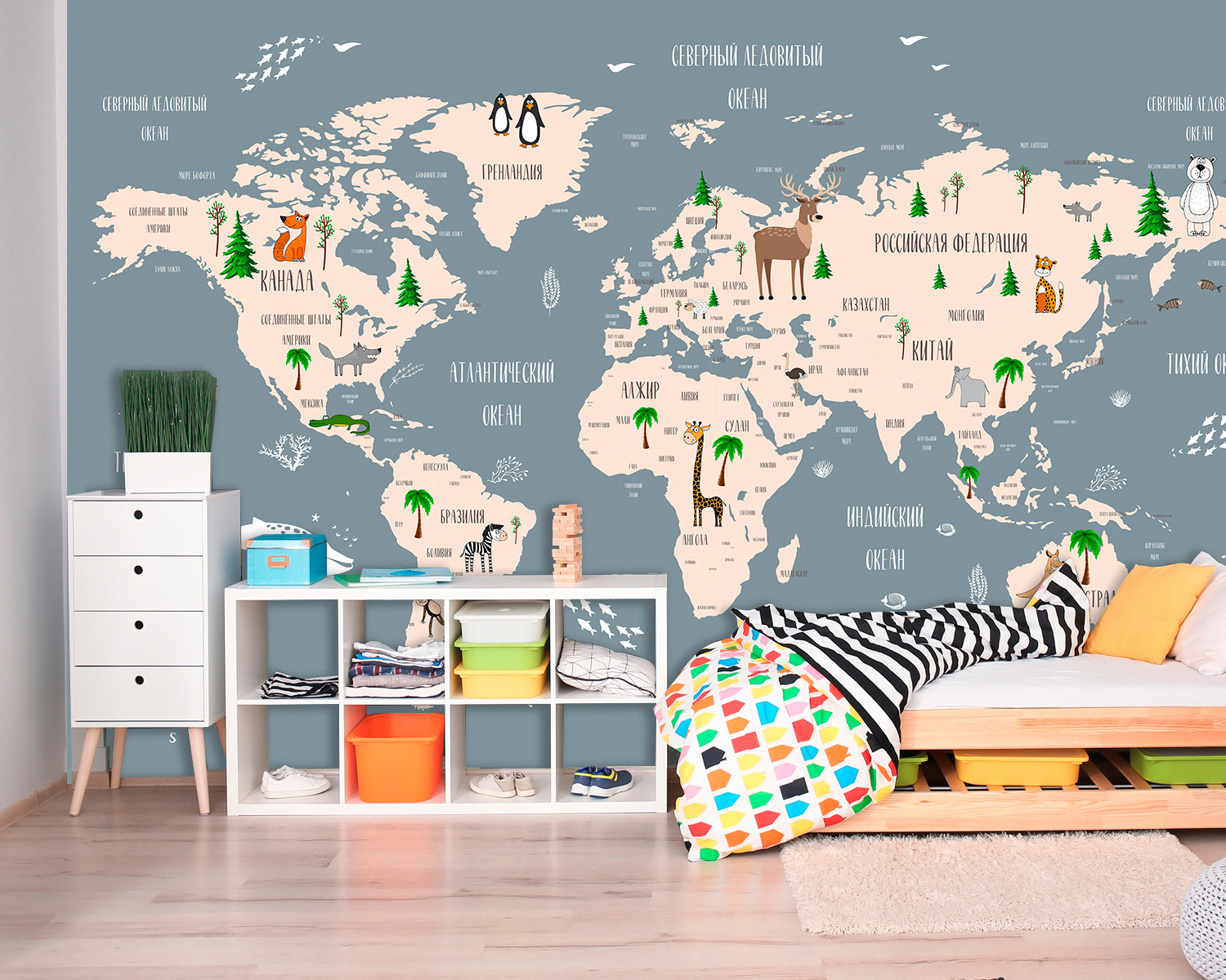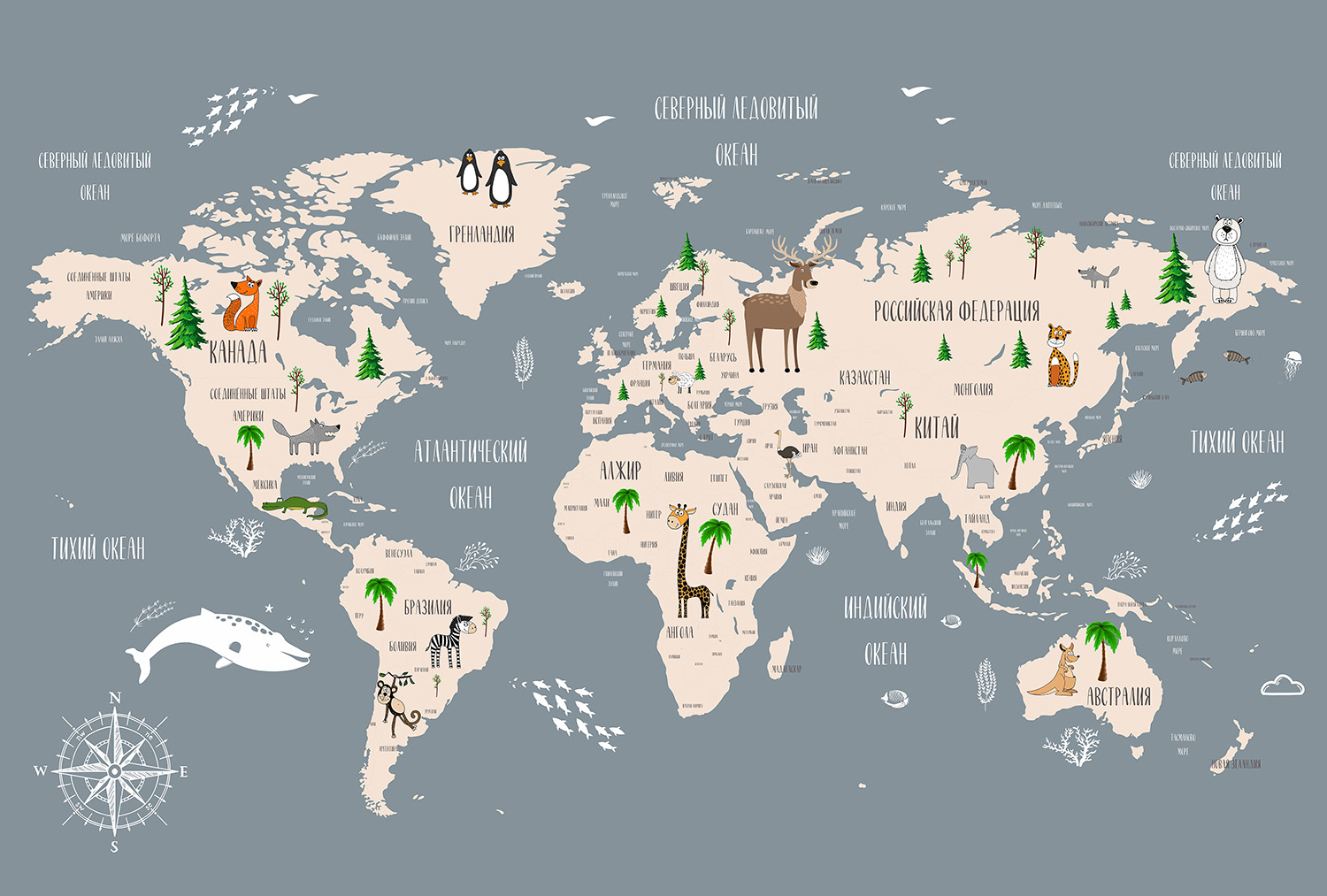 Описание Фотообои F-090 "Карта континентов и стран" 400х270