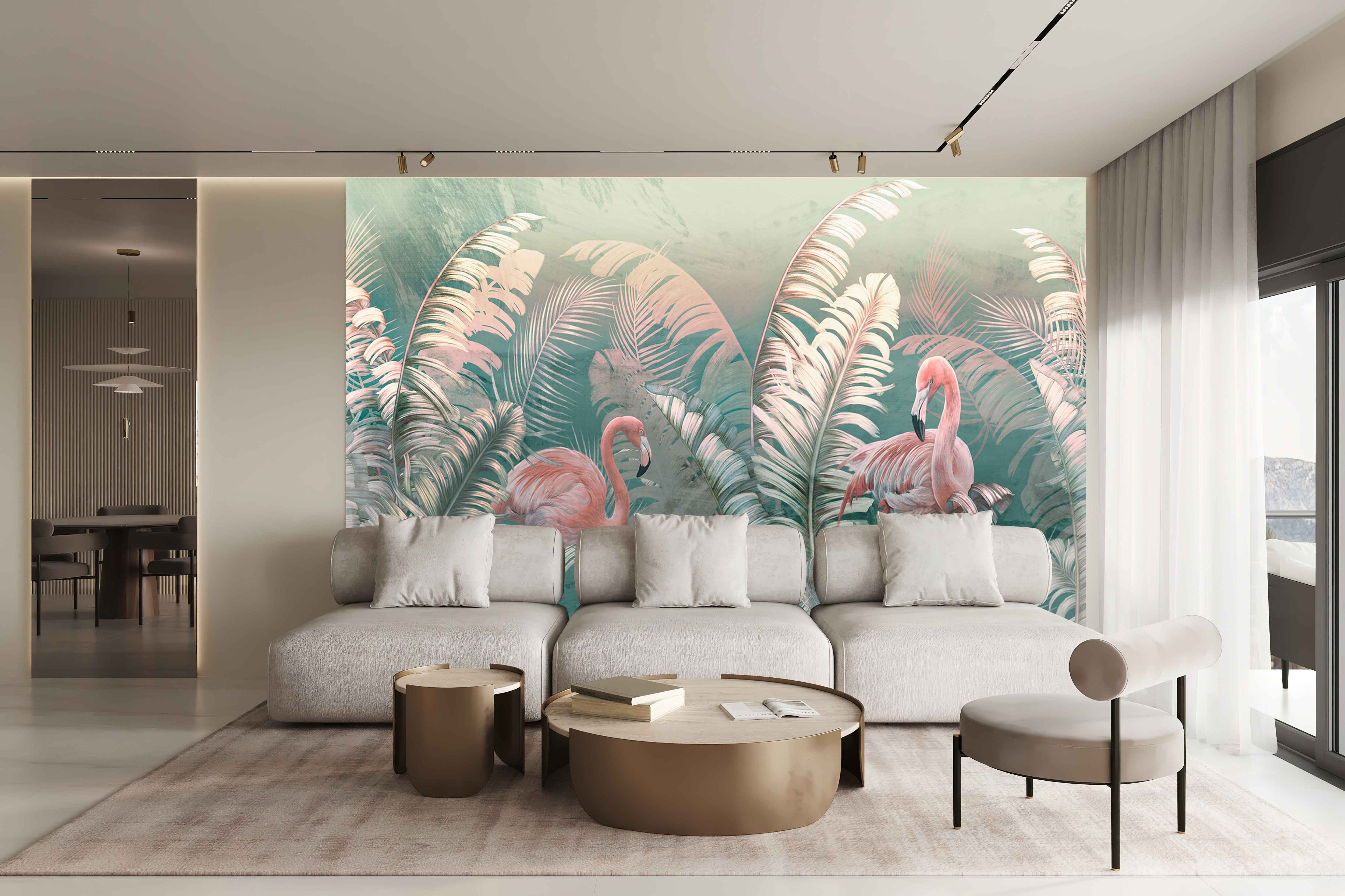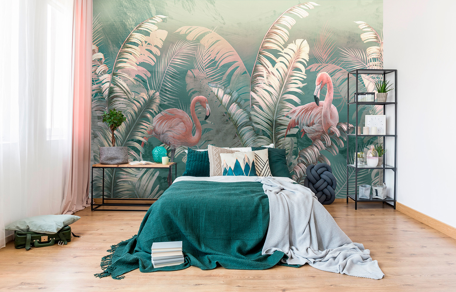 Описание Фотообои F-115 "Фламинго в экзотических листьях" 400х270