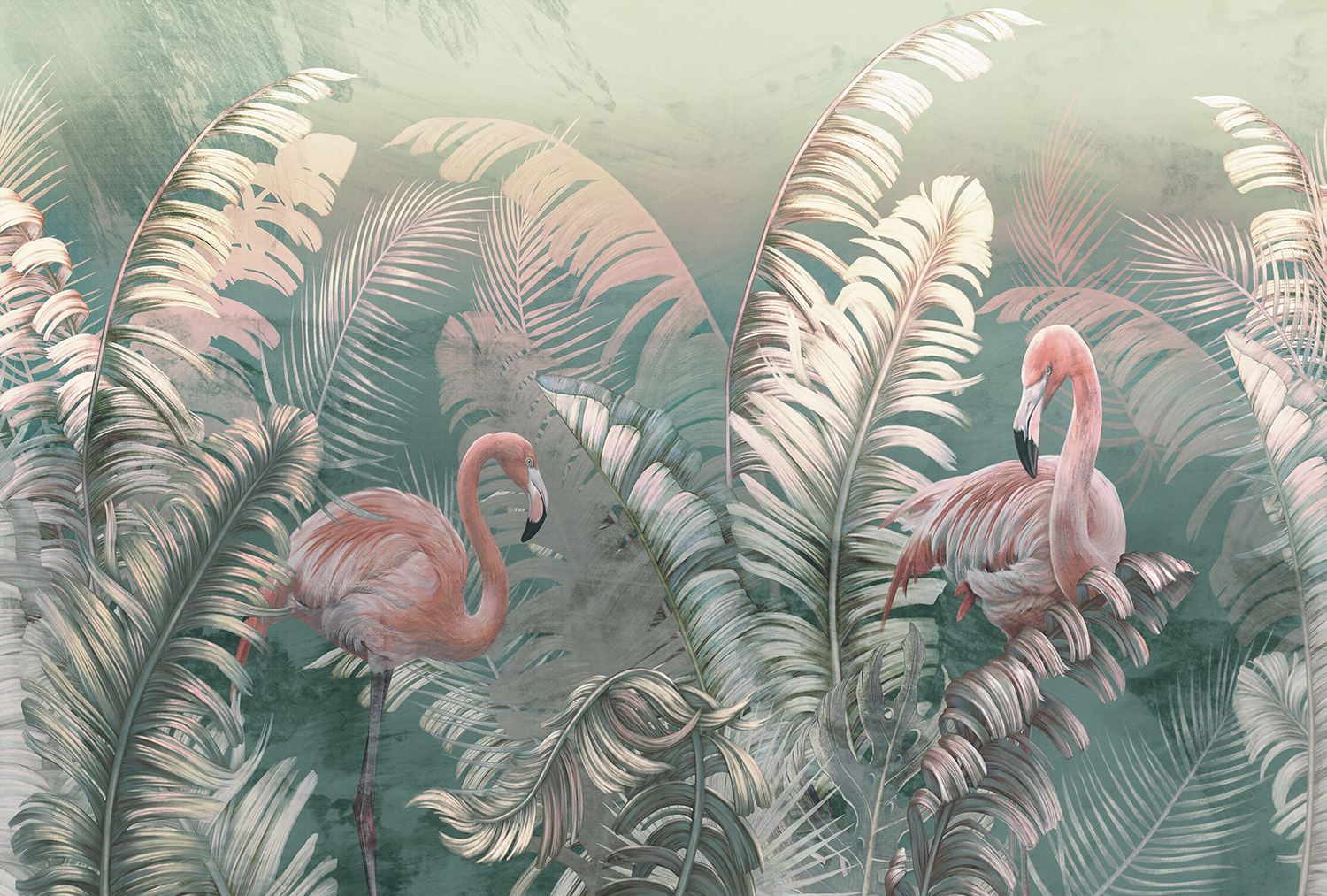 Фотообои F-115 "Фламинго в экзотических листьях" 400х270