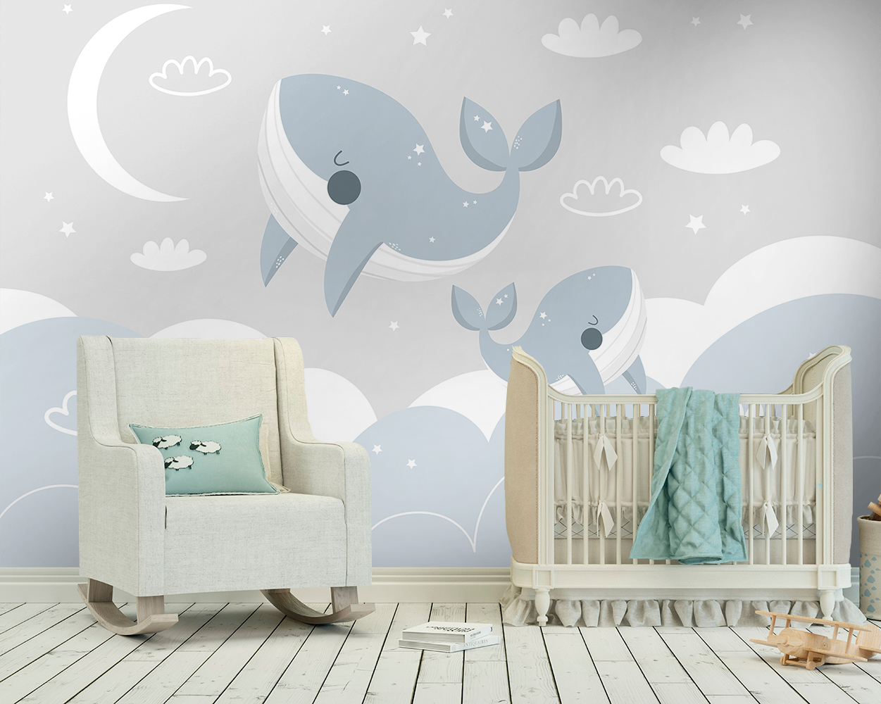 Описание Фотообои F-116 "Улыбчивые киты" 400х270