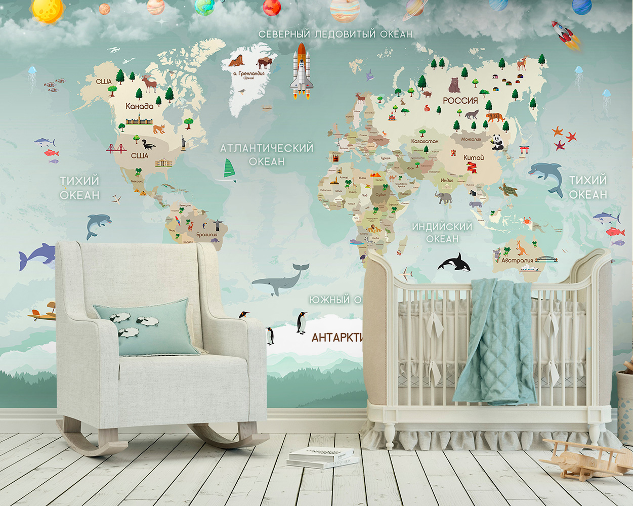 Фотообои F-124 "Детская карта с животными и планетами" 400х270 - Отзывы покупателей, пациентов, врачей