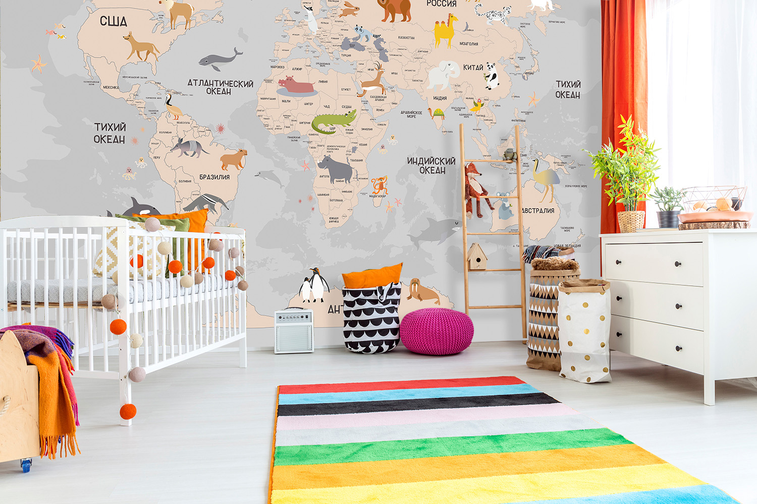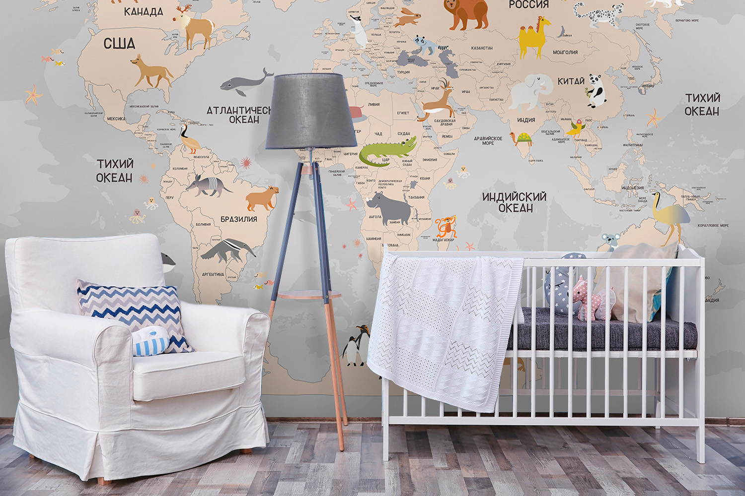 Фотообои F-125 "Детская карта мира с животными" 400х270 - Отзывы покупателей, пациентов, врачей