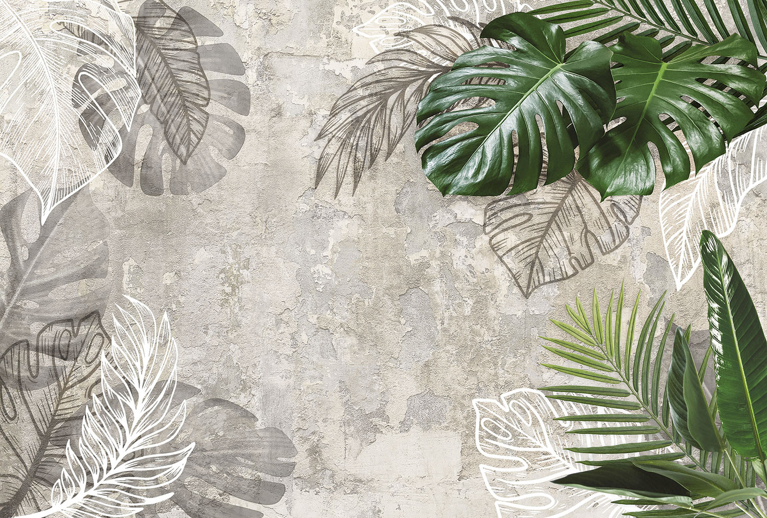 Описание Фотообои F-181 "Листья на бетоне" 400х270