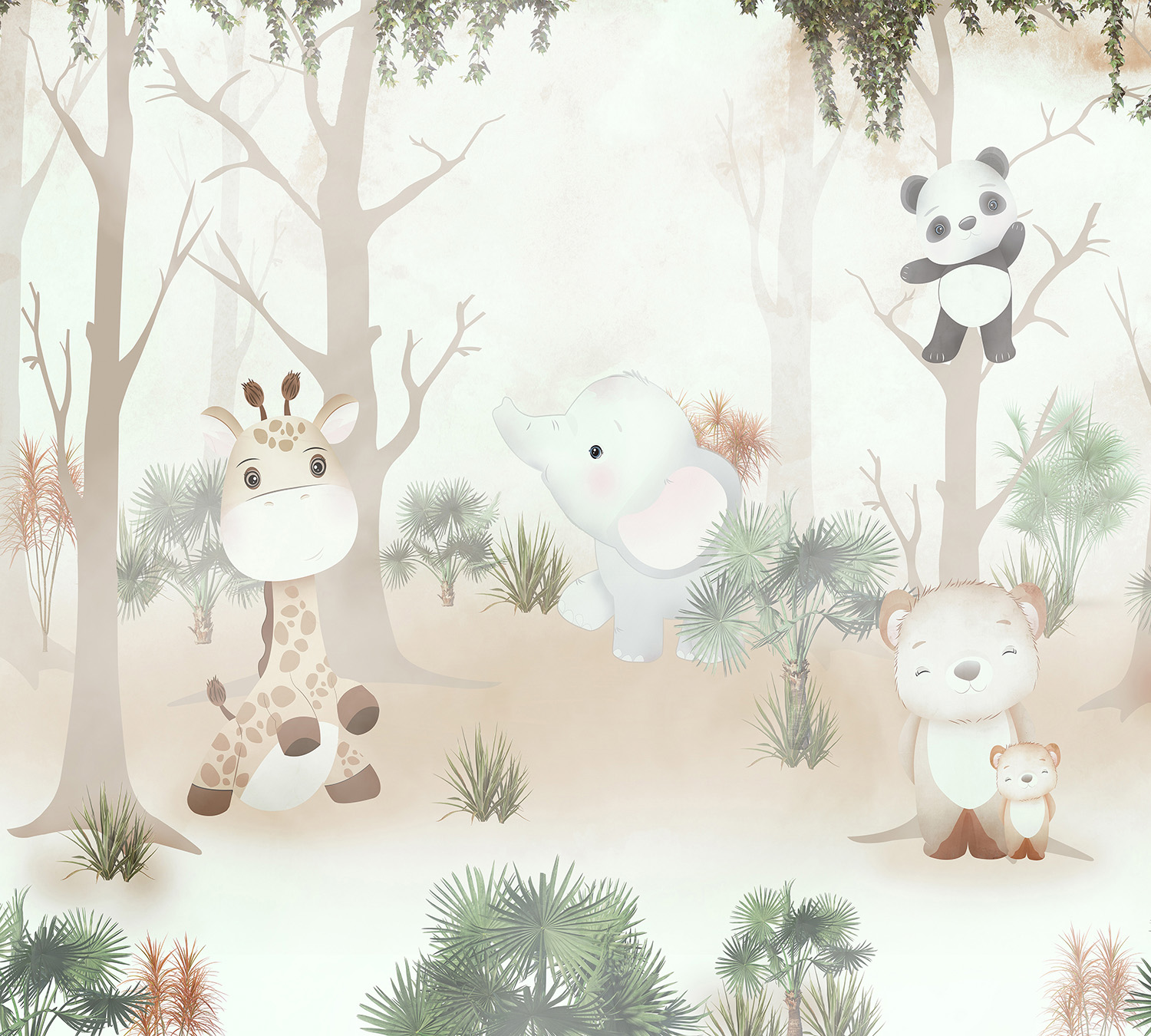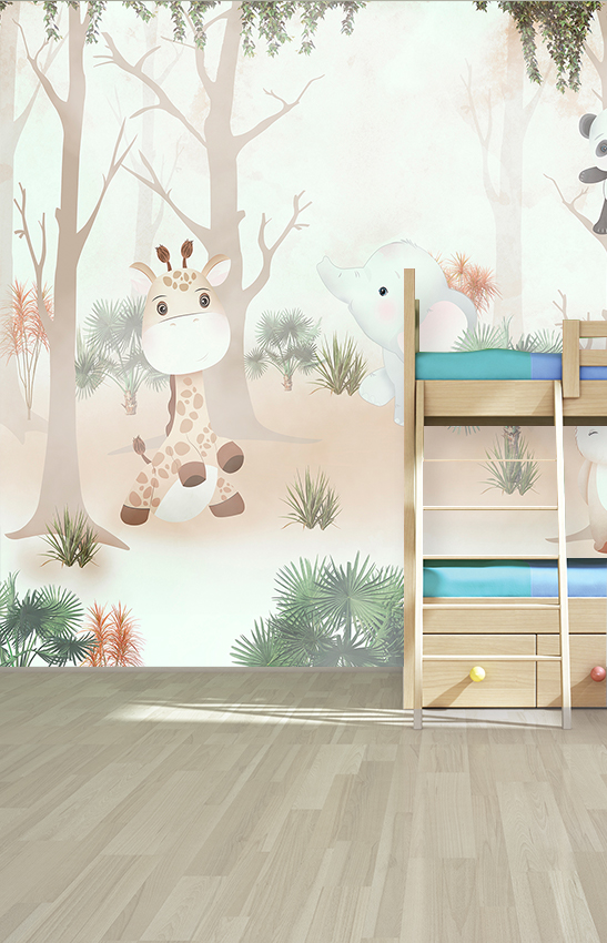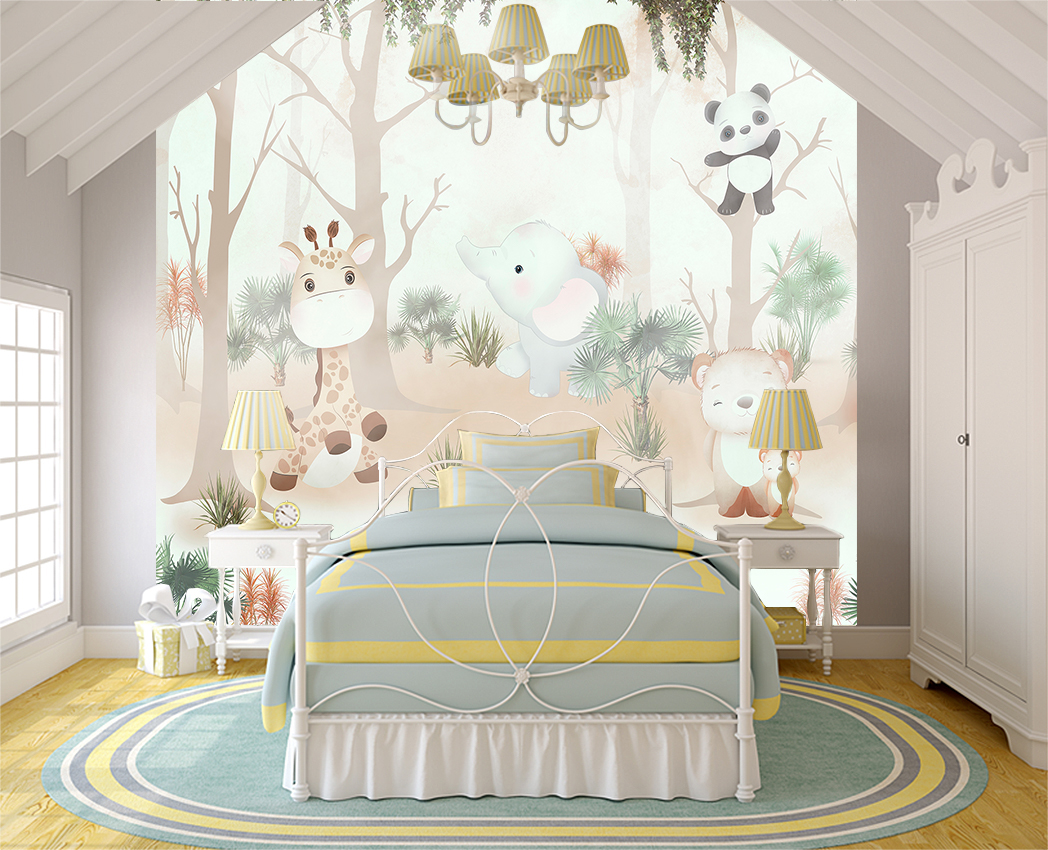 Фотообои F-186 "Милые животные в туманном лесу" 300х270