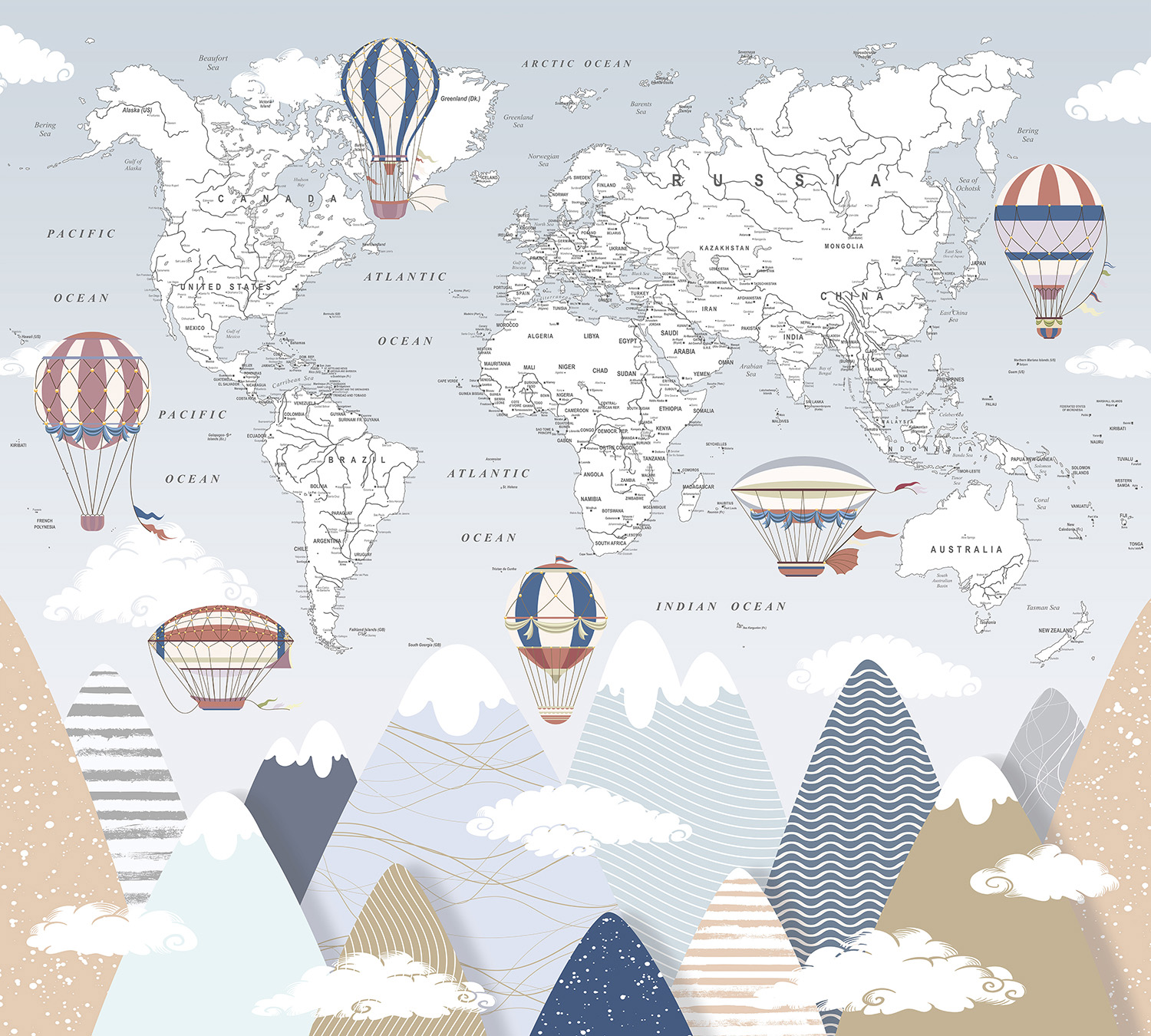 Фотообои F-189 "Карта с горами ENG" 300х270