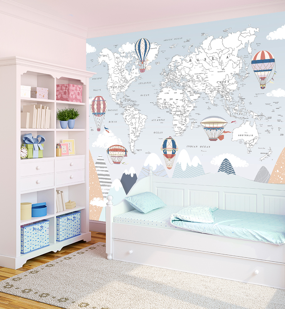 Описание Фотообои F-189 "Карта с горами ENG" 300х270