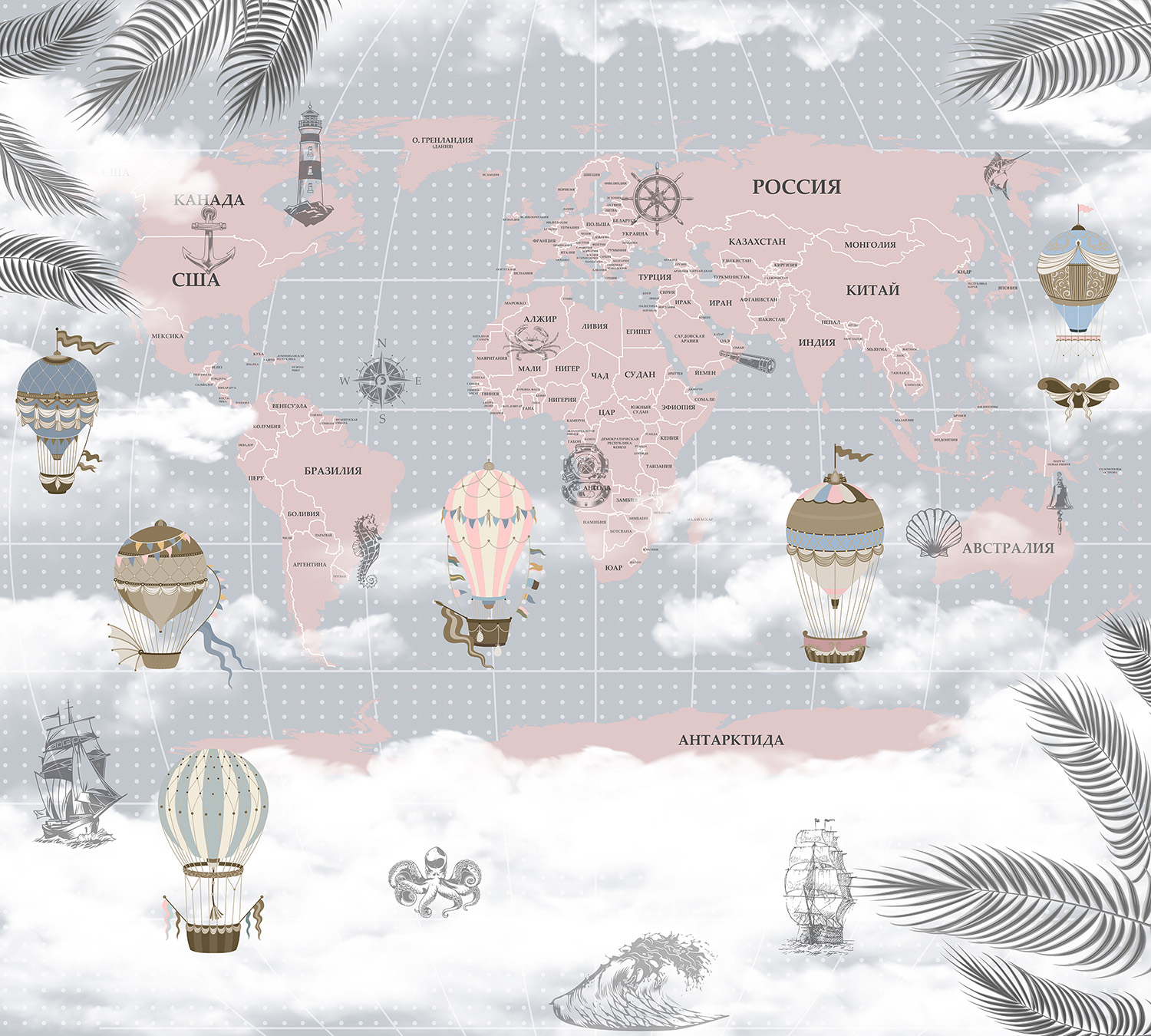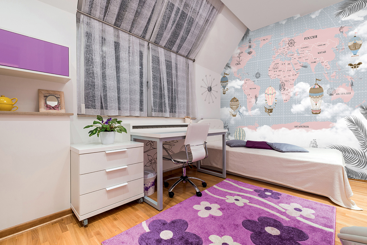 Фотообои F-192 "Детская карта мира с облаками и листьями" 300х270 - Отзывы покупателей, пациентов, врачей