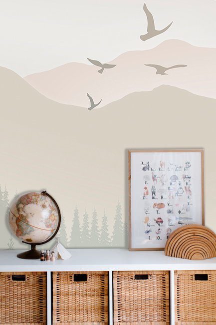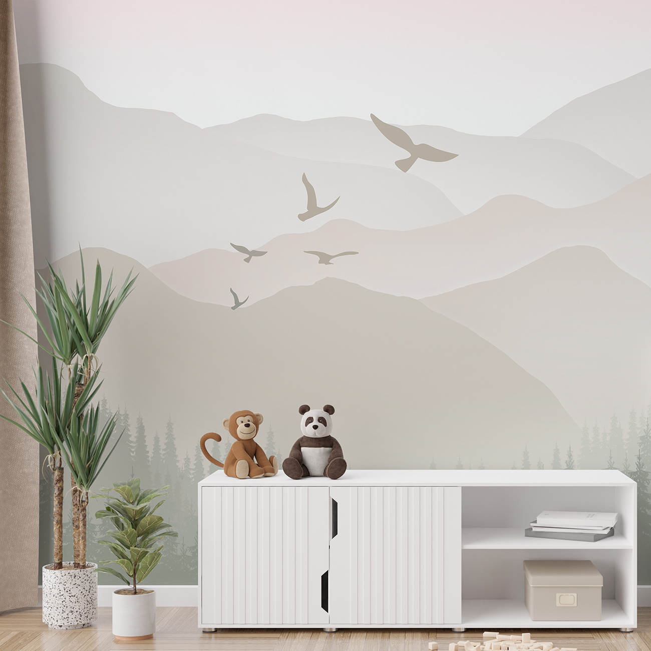 Фотообои F-234 "Птицы над горами и лесом беж" 300х270