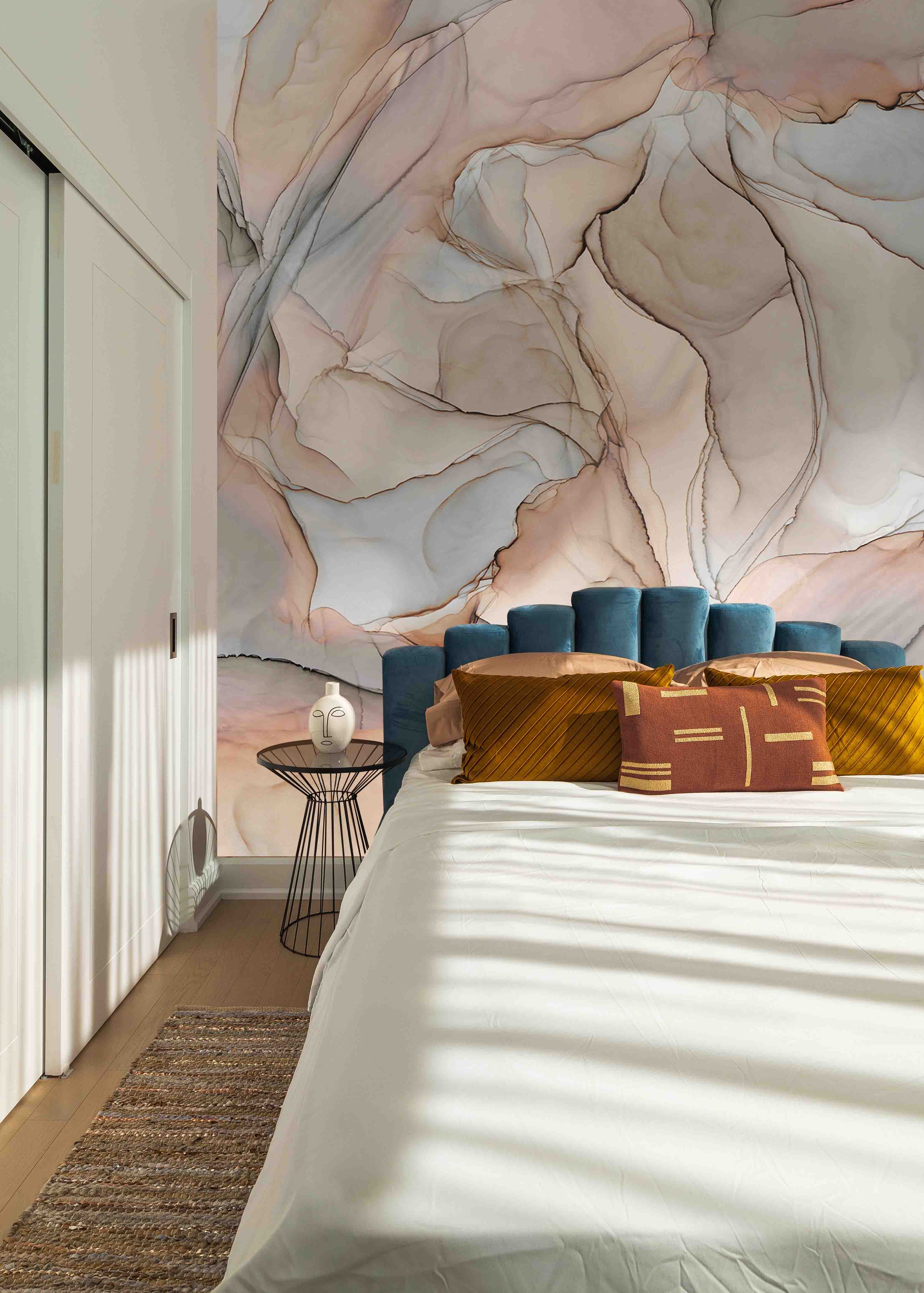 Наклеивайте на стену в очерёдности указанной на этикетке. Приложите фрагмент к стене и аккуратно разгладьте, выровняв и отцентрировав полотно по разметке. Для разглаживания рекомендуется использовать прижимной резиновый валик для обоев. Остатки клея удалите влажной тканью, излишки полотна срежьте острым ножом по линейке. Не допускается использование металлических и пластиковых шпателей! Следующий фрагмент наклейте встык. Аккуратно разгладьте стыки полотен без сильного нажима и трения, чтобы не повредить края.Фотообои F-262 "Бежевые флюиды" 300х270 - Характеристики