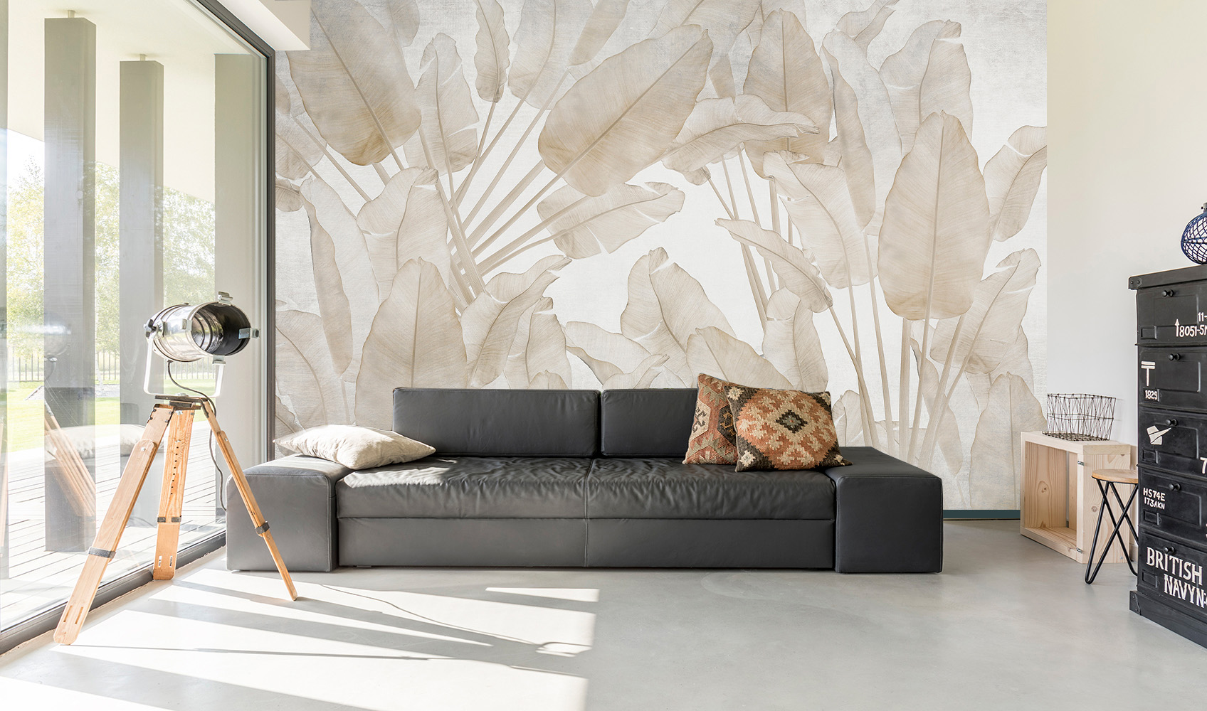Описание Фотообои F-284 "Банановые листья беж 2" 400х270
