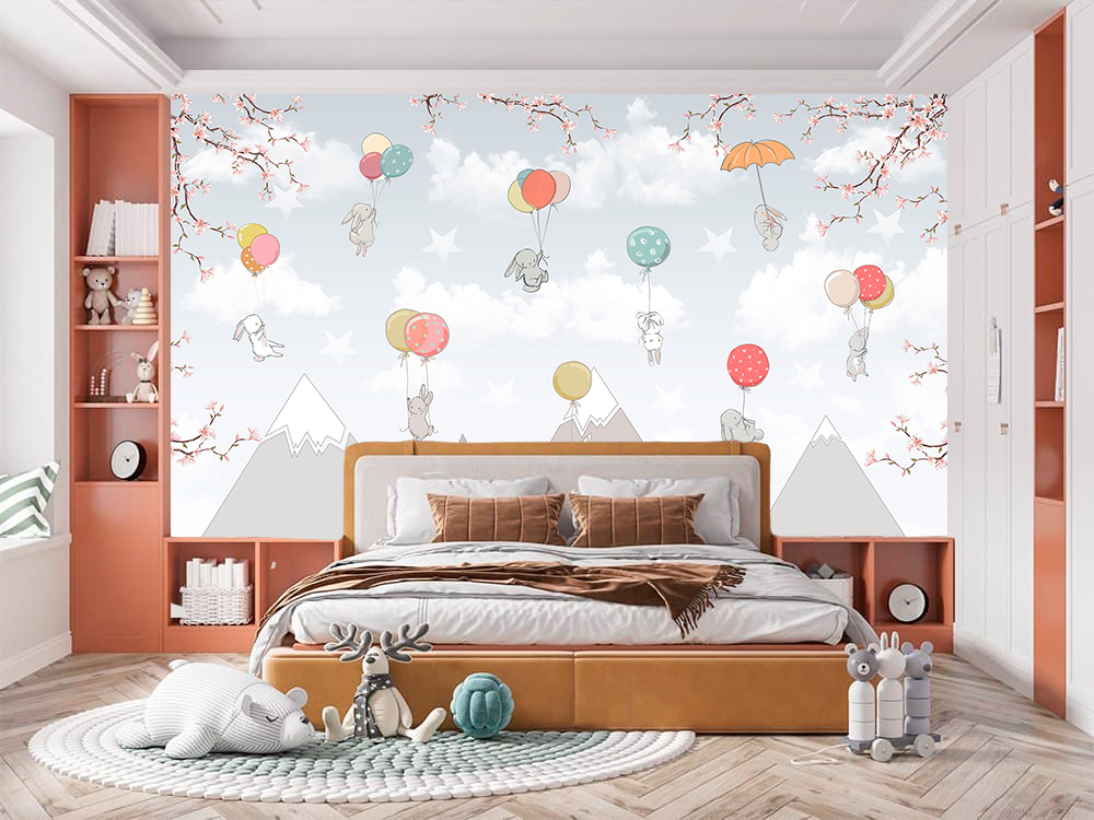 Фотообои F-290 "Милые зайчата над горами" 400х270