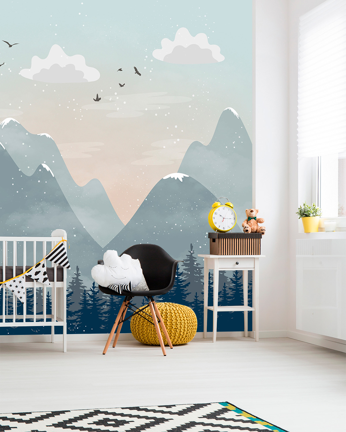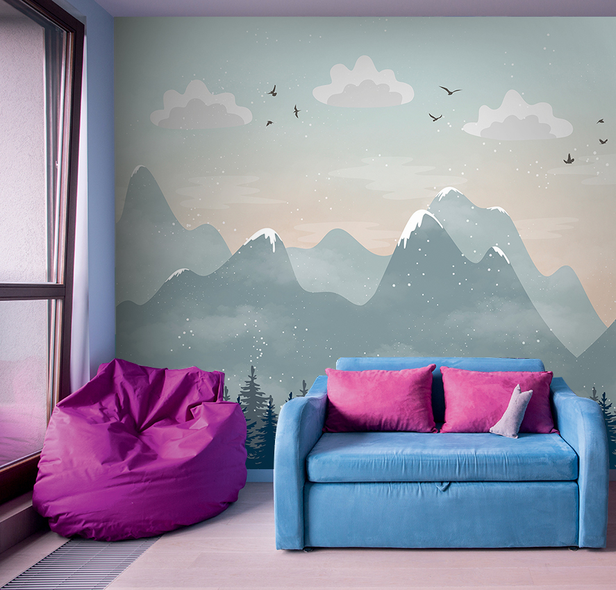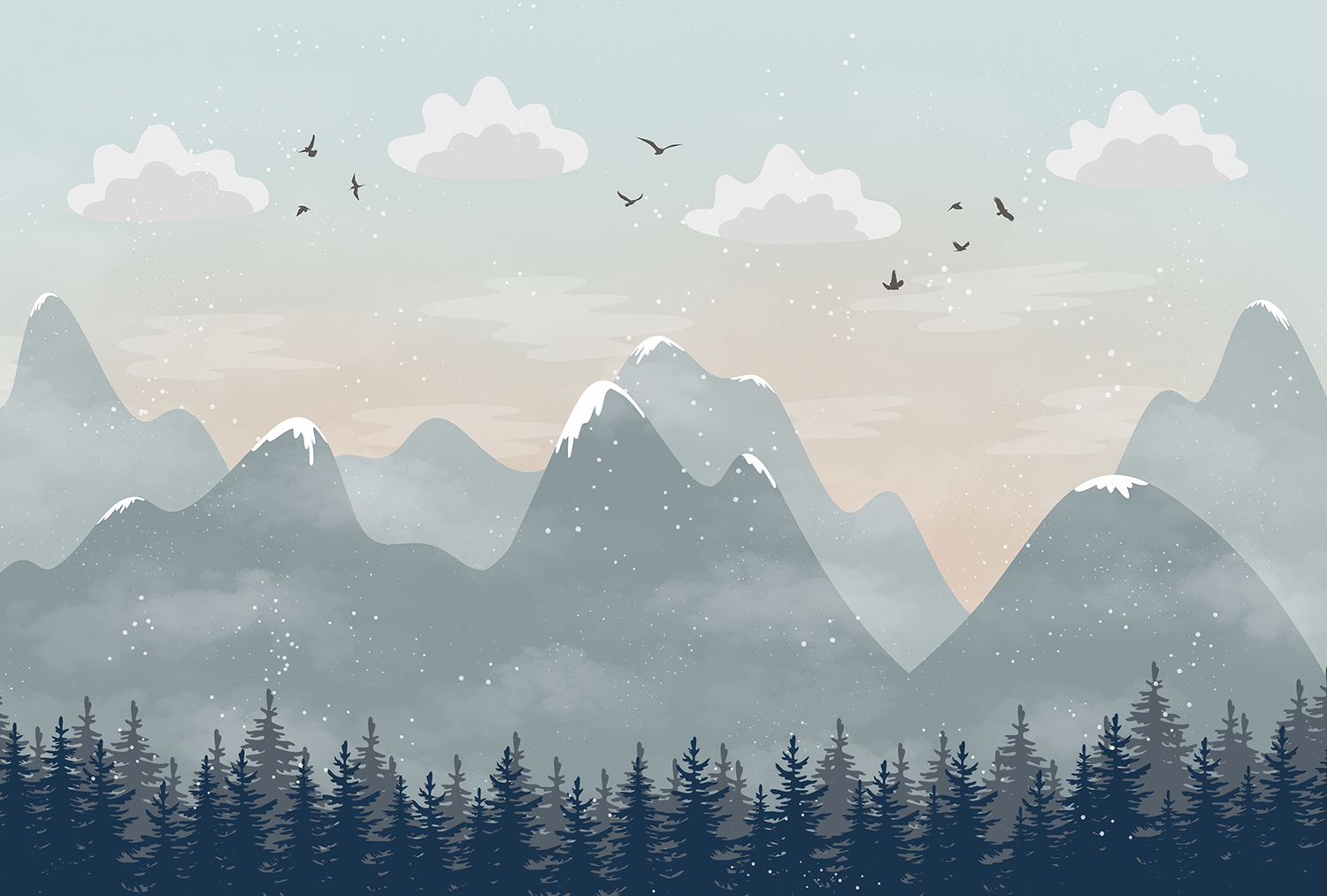 Фотообои F-295 "Птицы над лесом и горами" 400х270