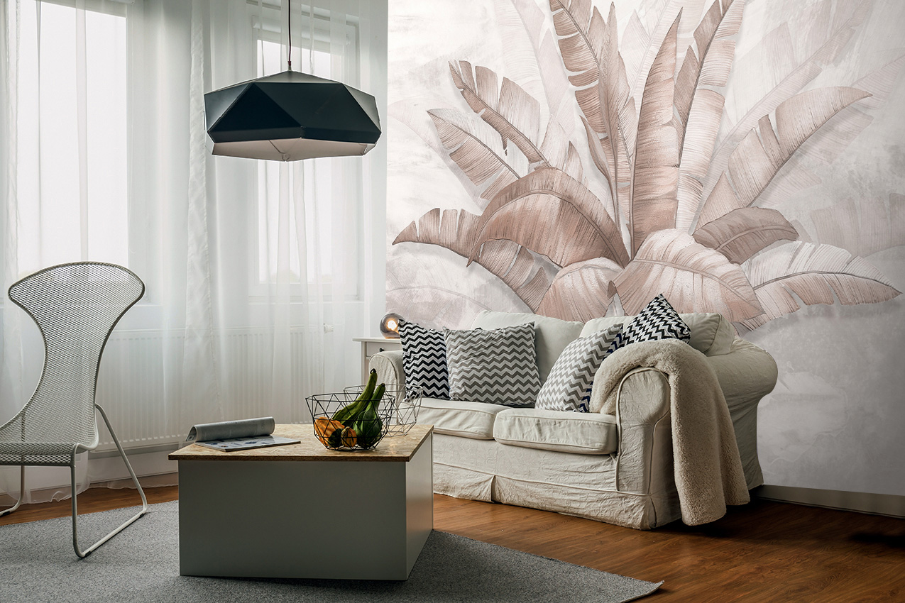 Наклеивайте на стену в очерёдности указанной на этикетке. Приложите фрагмент к стене и аккуратно разгладьте, выровняв и отцентрировав полотно по разметке. Для разглаживания рекомендуется использовать прижимной резиновый валик для обоев. Остатки клея удалите влажной тканью, излишки полотна срежьте острым ножом по линейке. Не допускается использование металлических и пластиковых шпателей! Следующий фрагмент наклейте встык. Аккуратно разгладьте стыки полотен без сильного нажима и трения, чтобы не повредить края.Фотообои F-329 "Раскидистые банановые листья" 400х270 - Характеристики