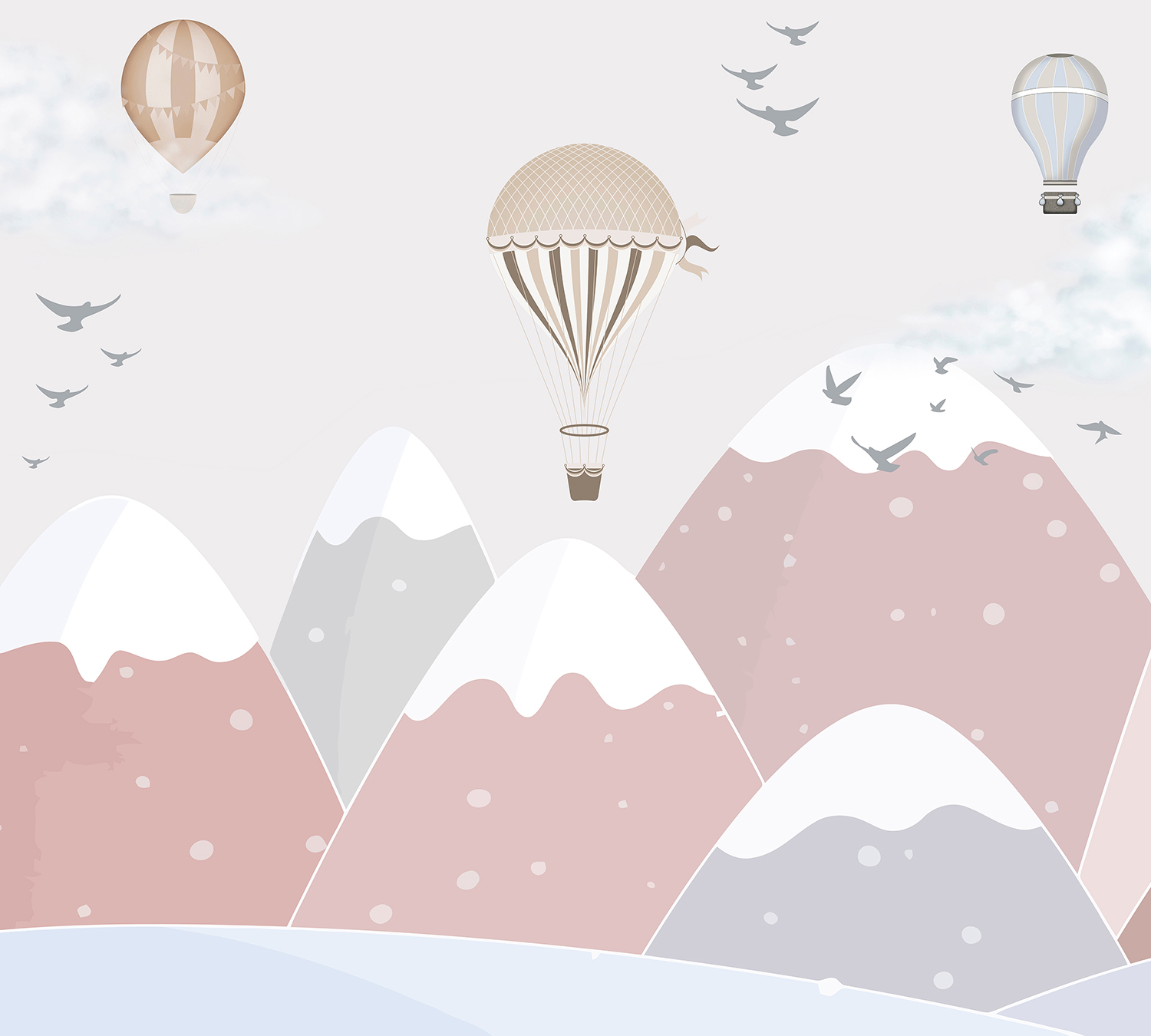 Описание Фотообои F-330 "Розовые горы с воздушными шарами" 300х270