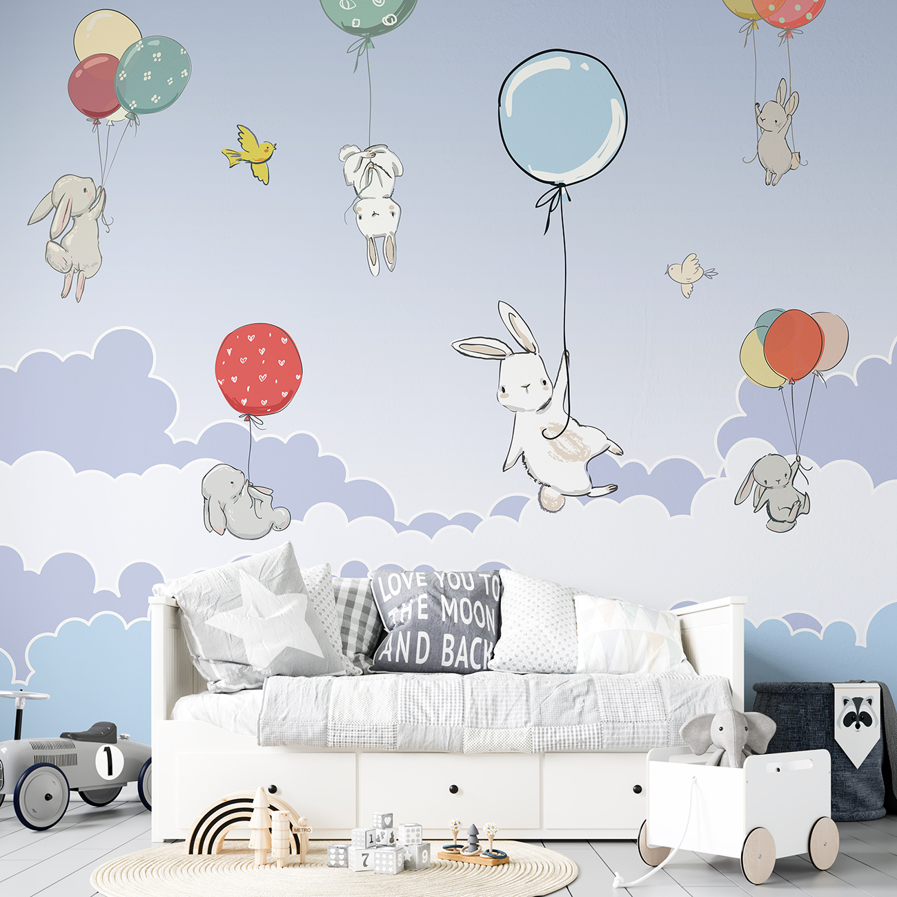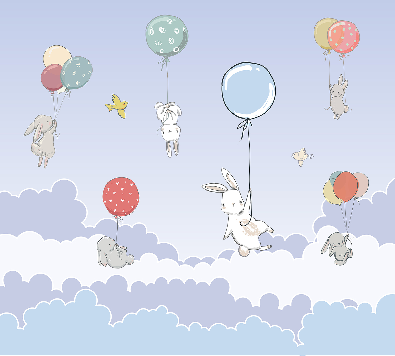 Фотообои F-357 "Зайки в небе пастельные тона" 300х270 - Отзывы покупателей, пациентов, врачей