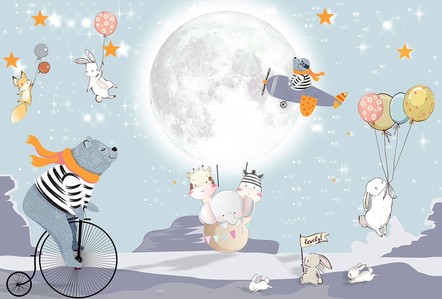 Описание Фотообои F-365 "Животные на фоне луны" 400х270