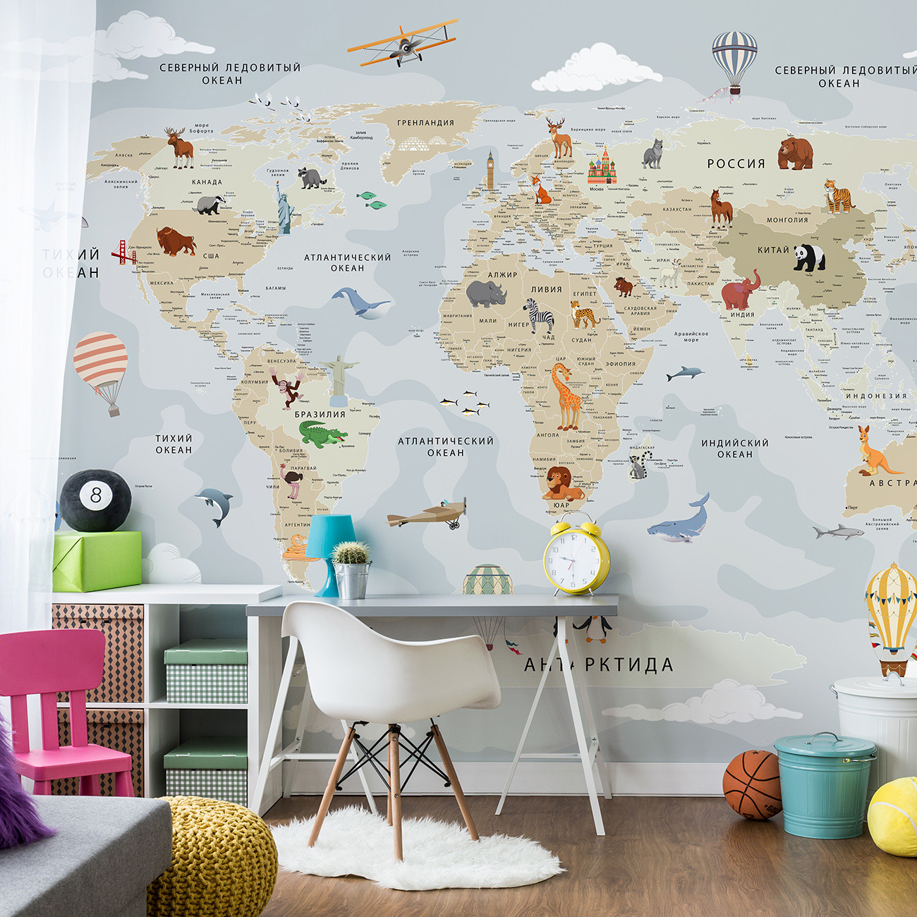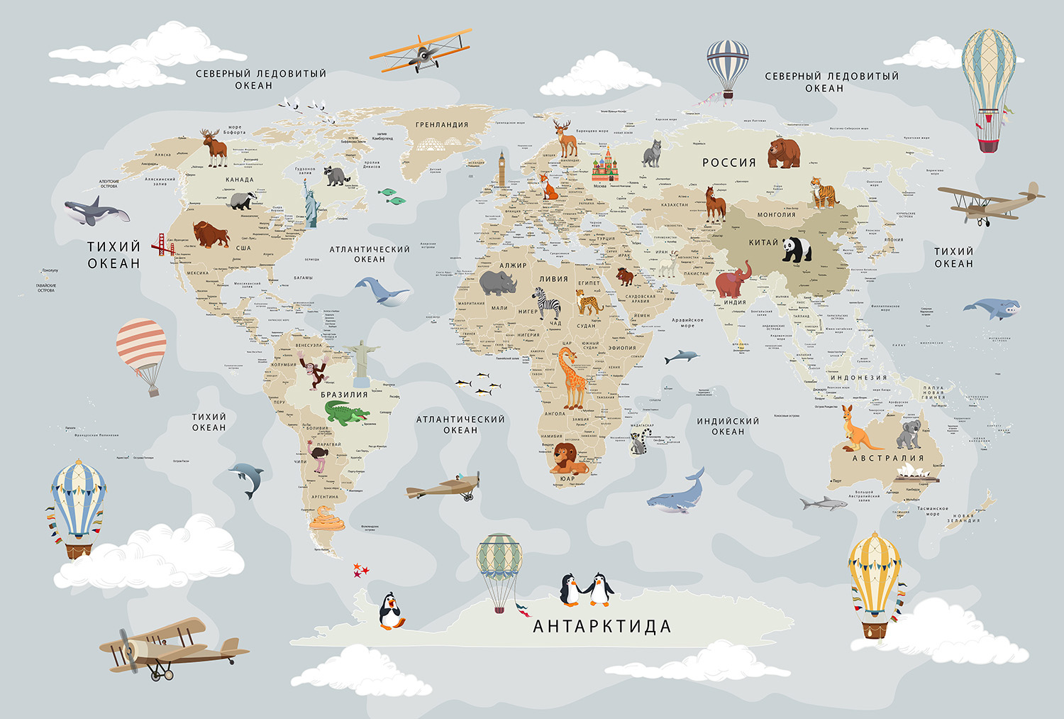 Описание Фотообои F-378 "Детская карта мира с городами" 400х270