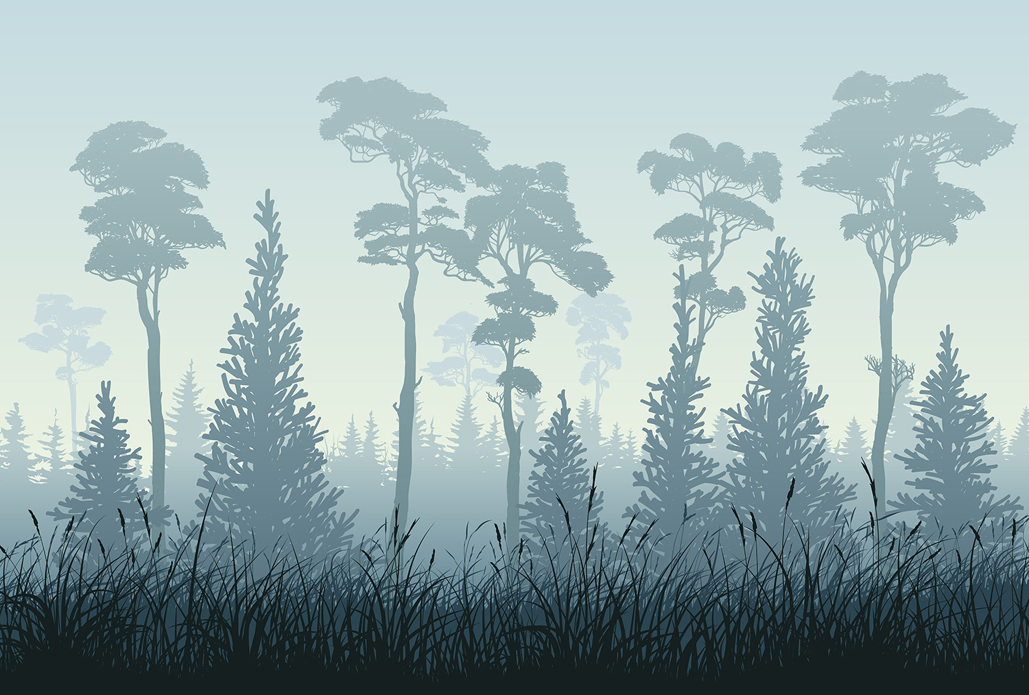 Описание Фотообои F-400 "Хвойный лес графика" 400х270