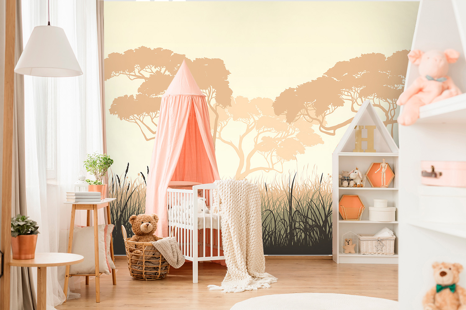 Наклеивайте на стену в очерёдности указанной на этикетке. Приложите фрагмент к стене и аккуратно разгладьте, выровняв и отцентрировав полотно по разметке. Для разглаживания рекомендуется использовать прижимной резиновый валик для обоев. Остатки клея удалите влажной тканью, излишки полотна срежьте острым ножом по линейке. Не допускается использование металлических и пластиковых шпателей! Следующий фрагмент наклейте встык. Аккуратно разгладьте стыки полотен без сильного нажима и трения, чтобы не повредить края.Фотообои F-402 "Закат в Саванне" 400х270 - Характеристики