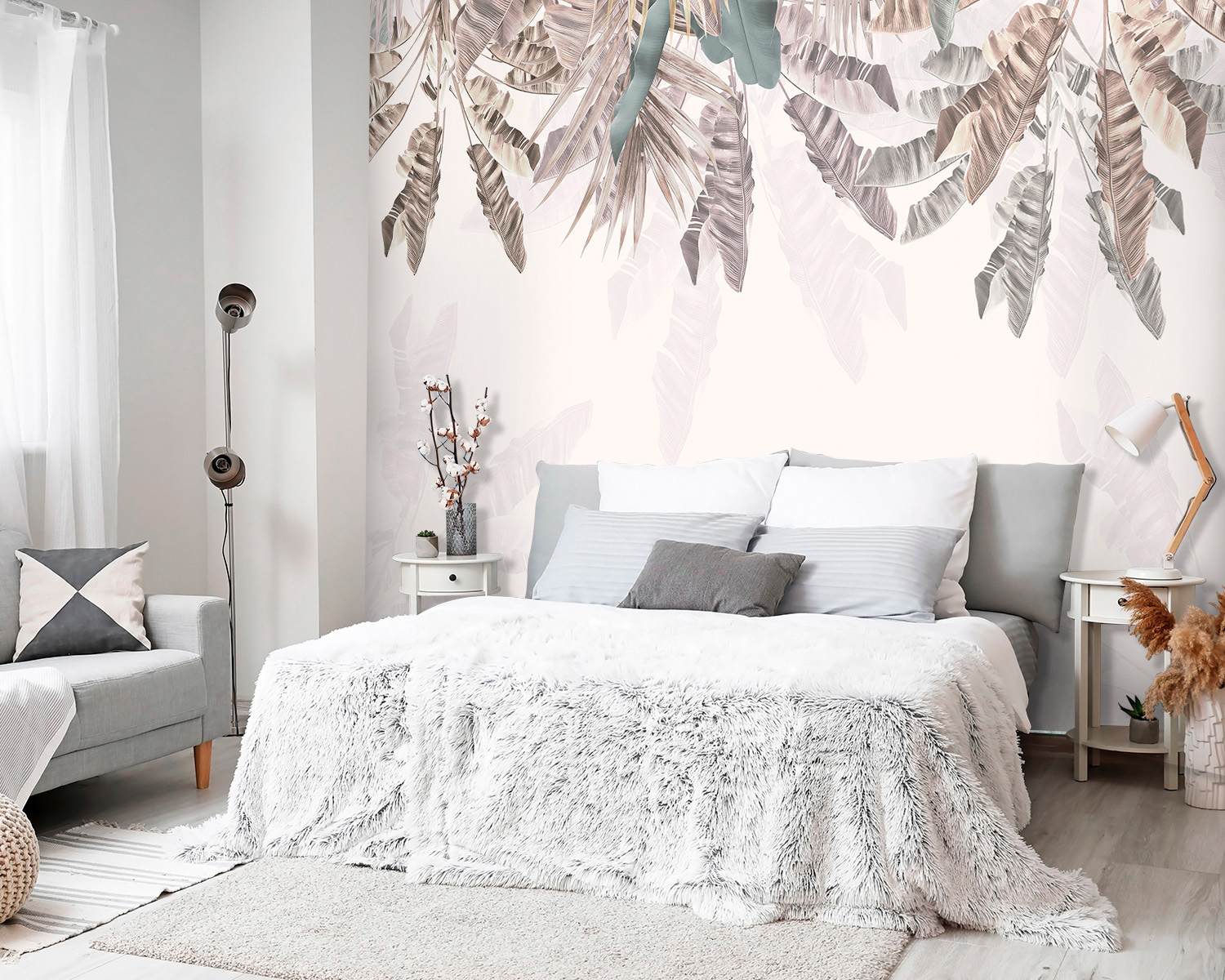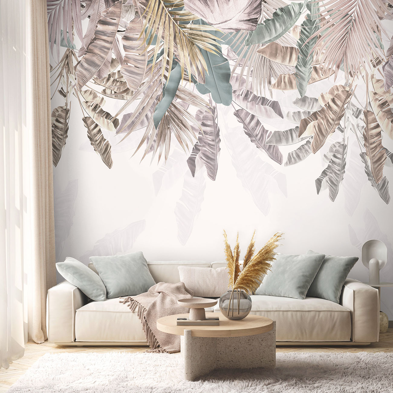 Описание Фотообои F-408 "Тропические листья на светлом фоне" 300х270