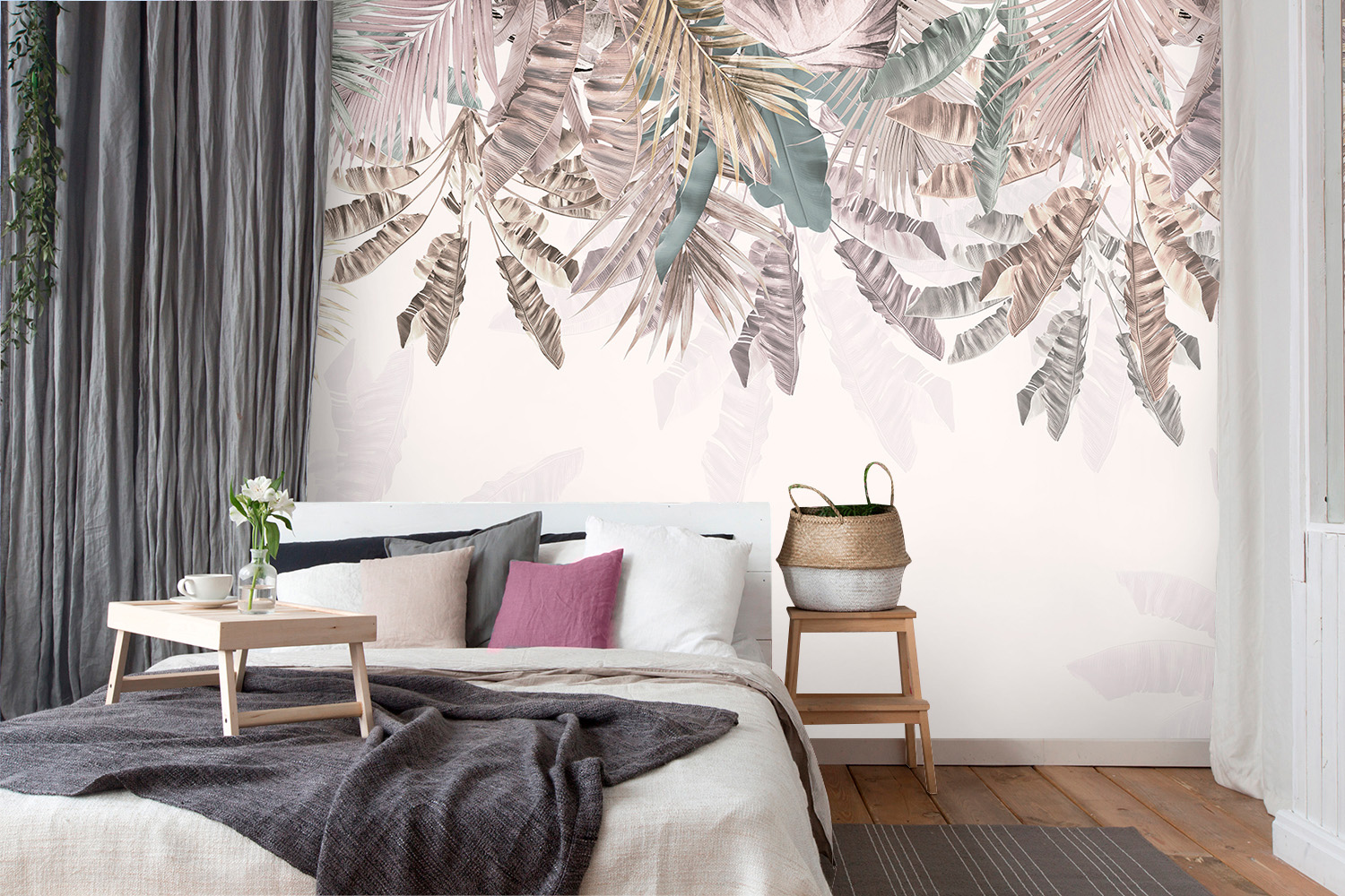 Фотообои F-409 "Тропические листья на светлом фоне 2" 400х270