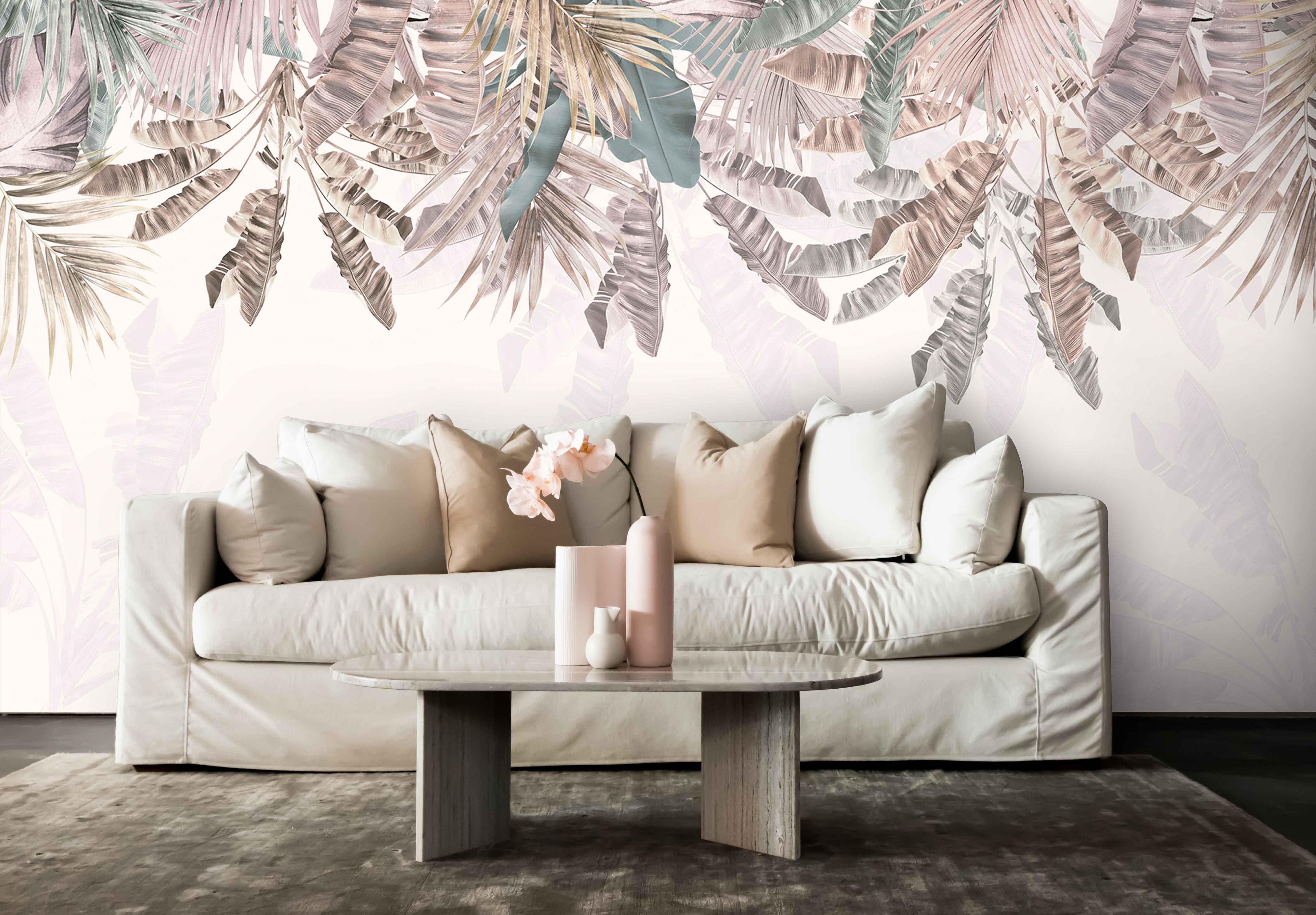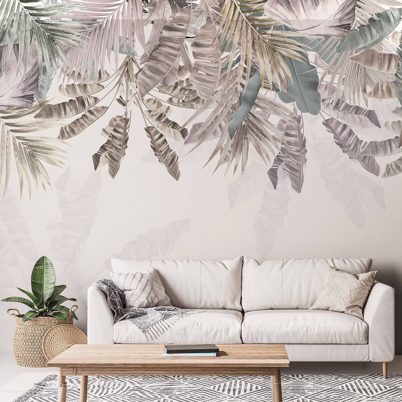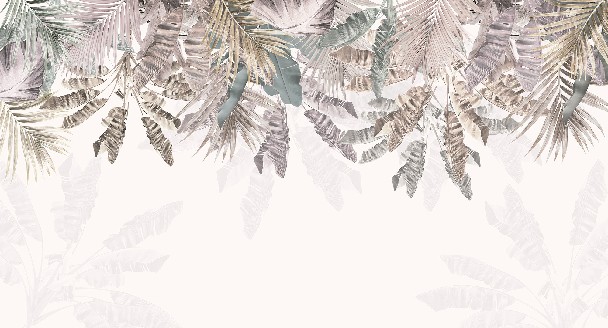 Фотообои F-410 "Тропические листья на светлом фоне 3" 500х270