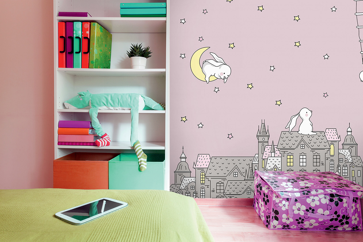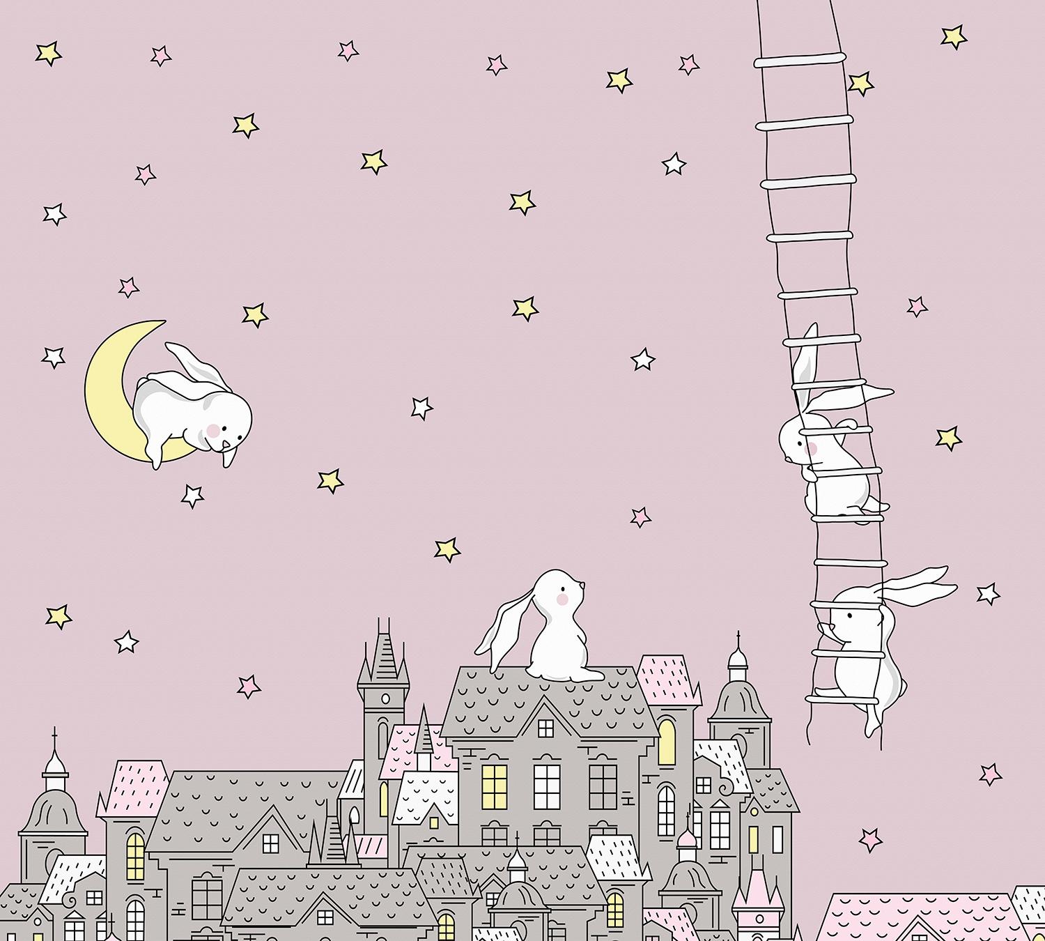 Фотообои F-434 "Кролики в звёздном небе" 300х270