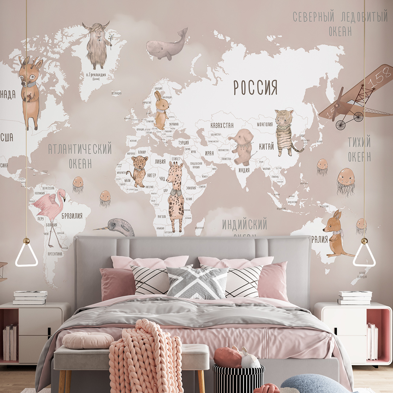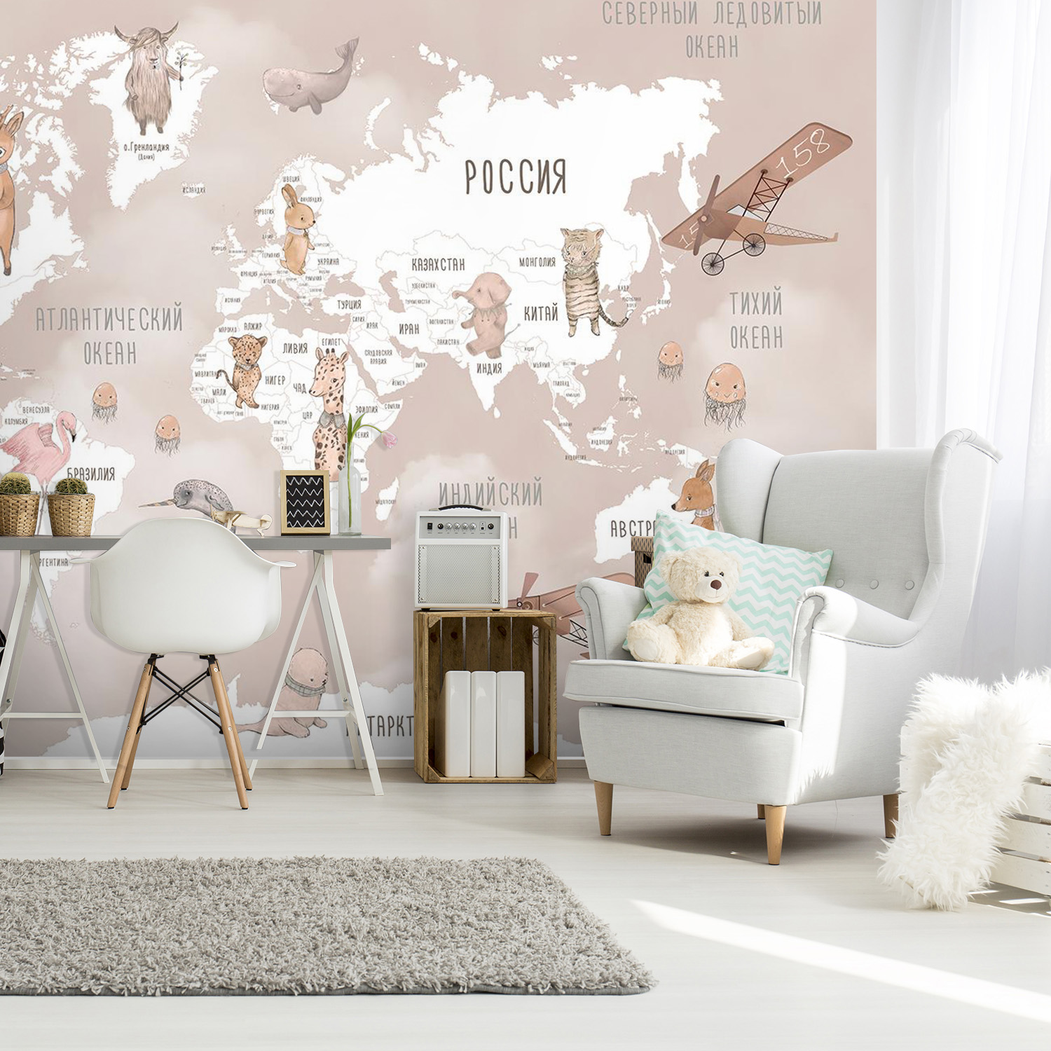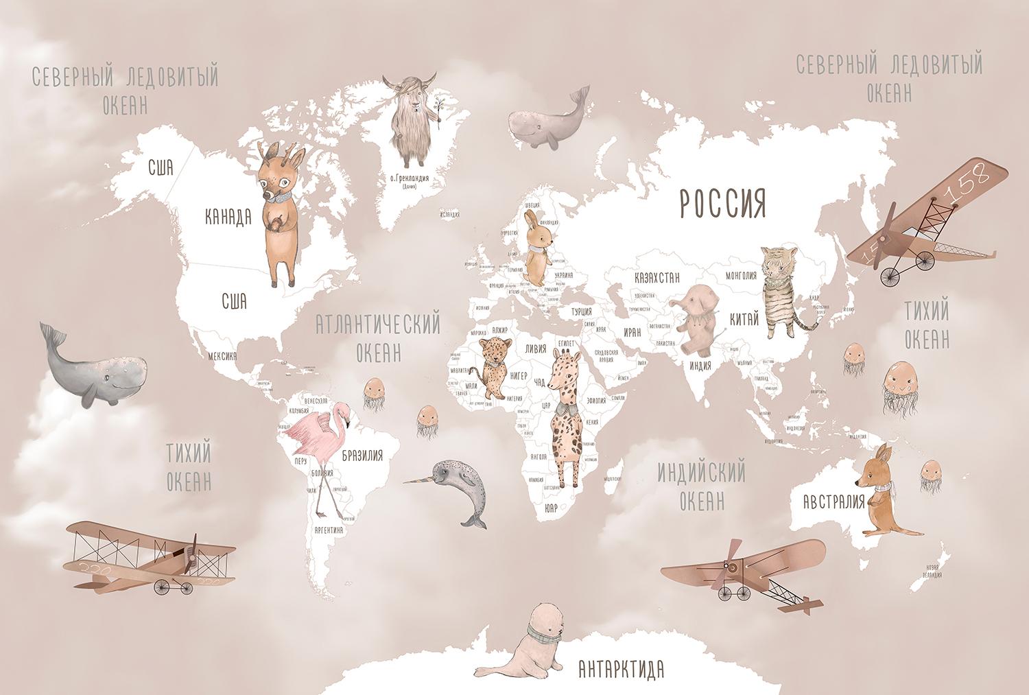 Фотообои F-456 "Карта с милыми животными и самолетами" 400х270 - Отзывы покупателей, пациентов, врачей