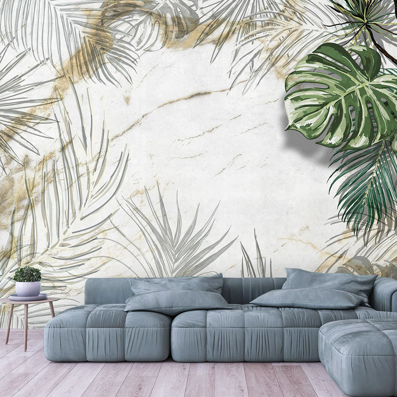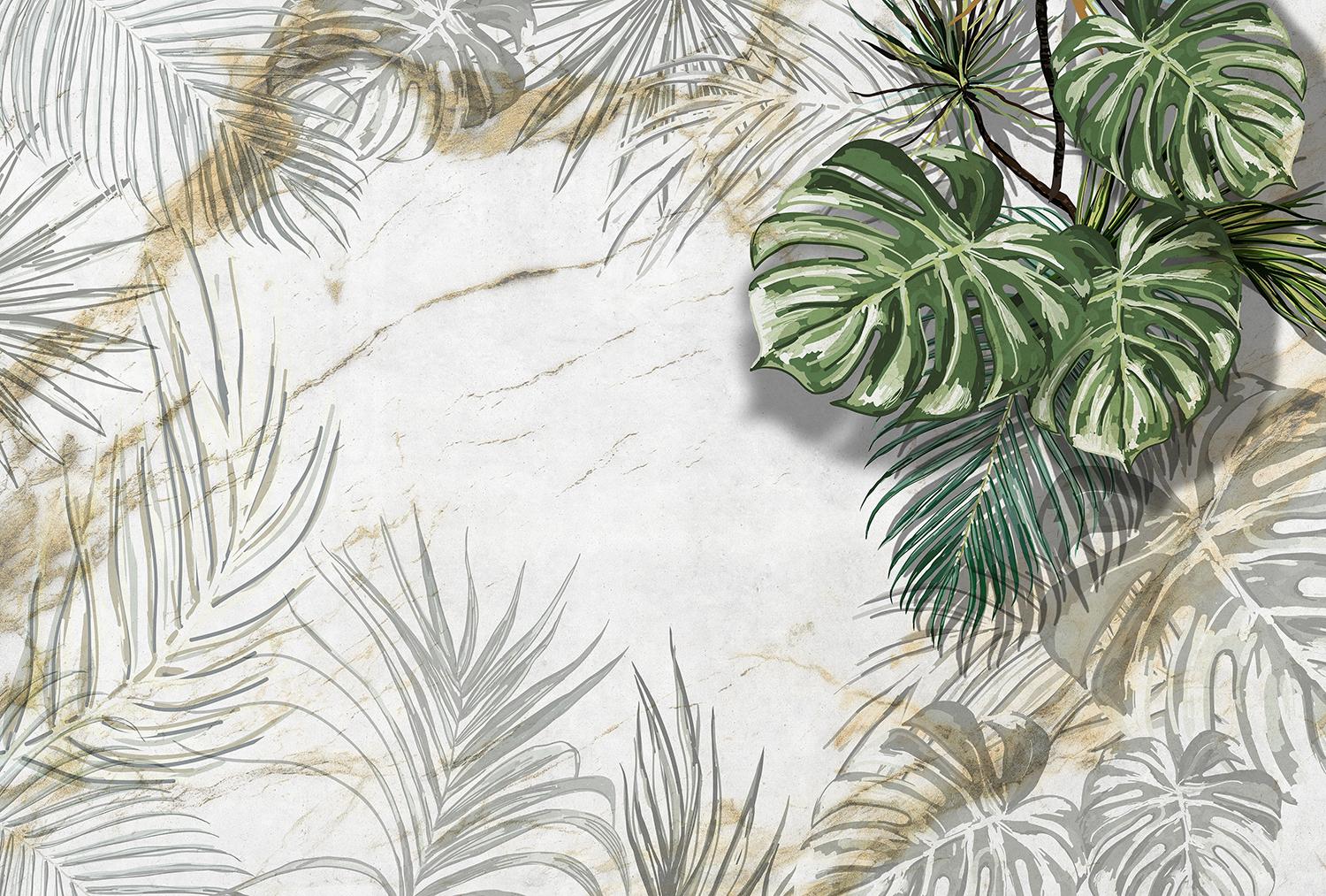 Фотообои F-460 "Тропические листья на состаренной стене" 400х270