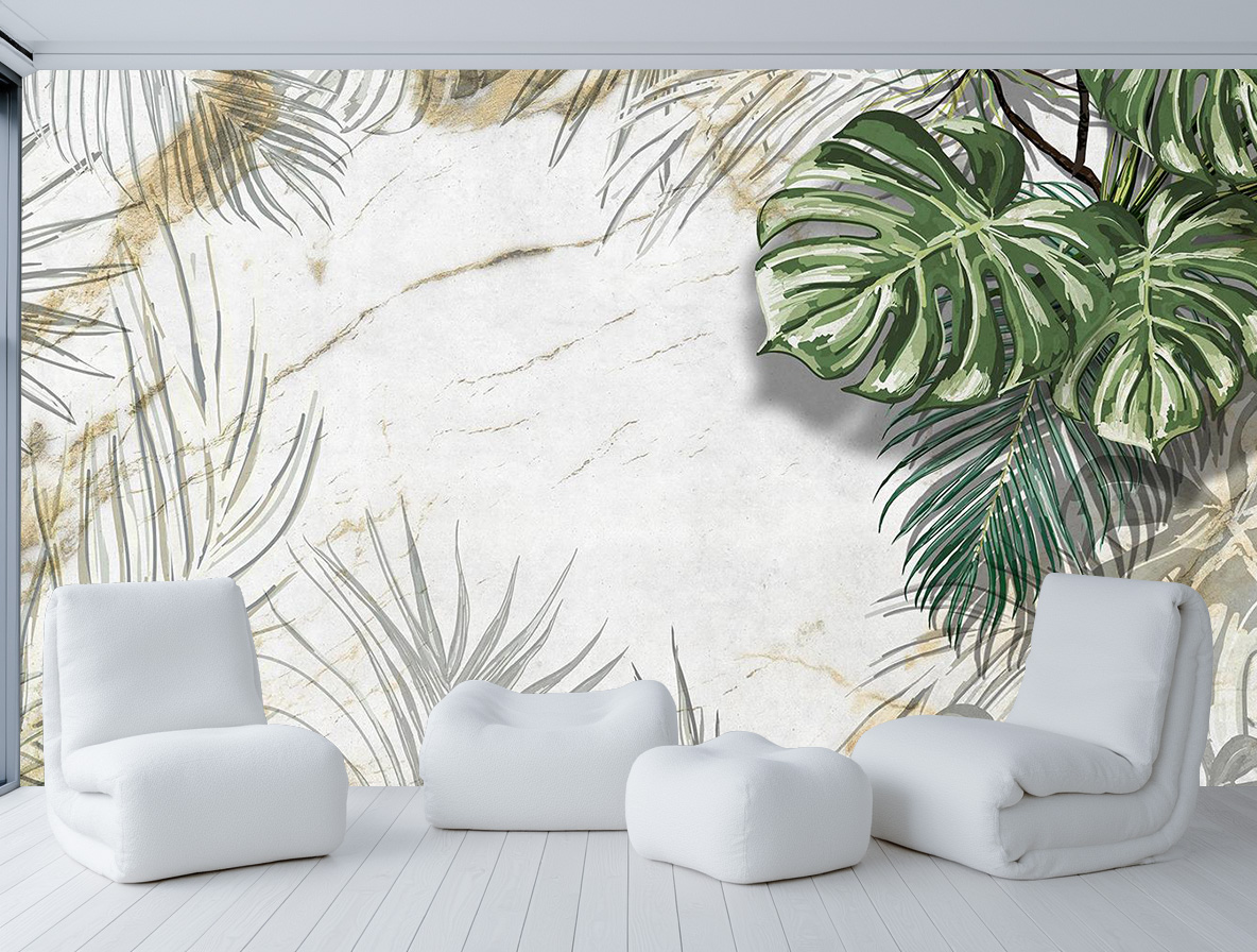 Фотообои F-460 "Тропические листья на состаренной стене" 400х270 - Отзывы покупателей, пациентов, врачей
