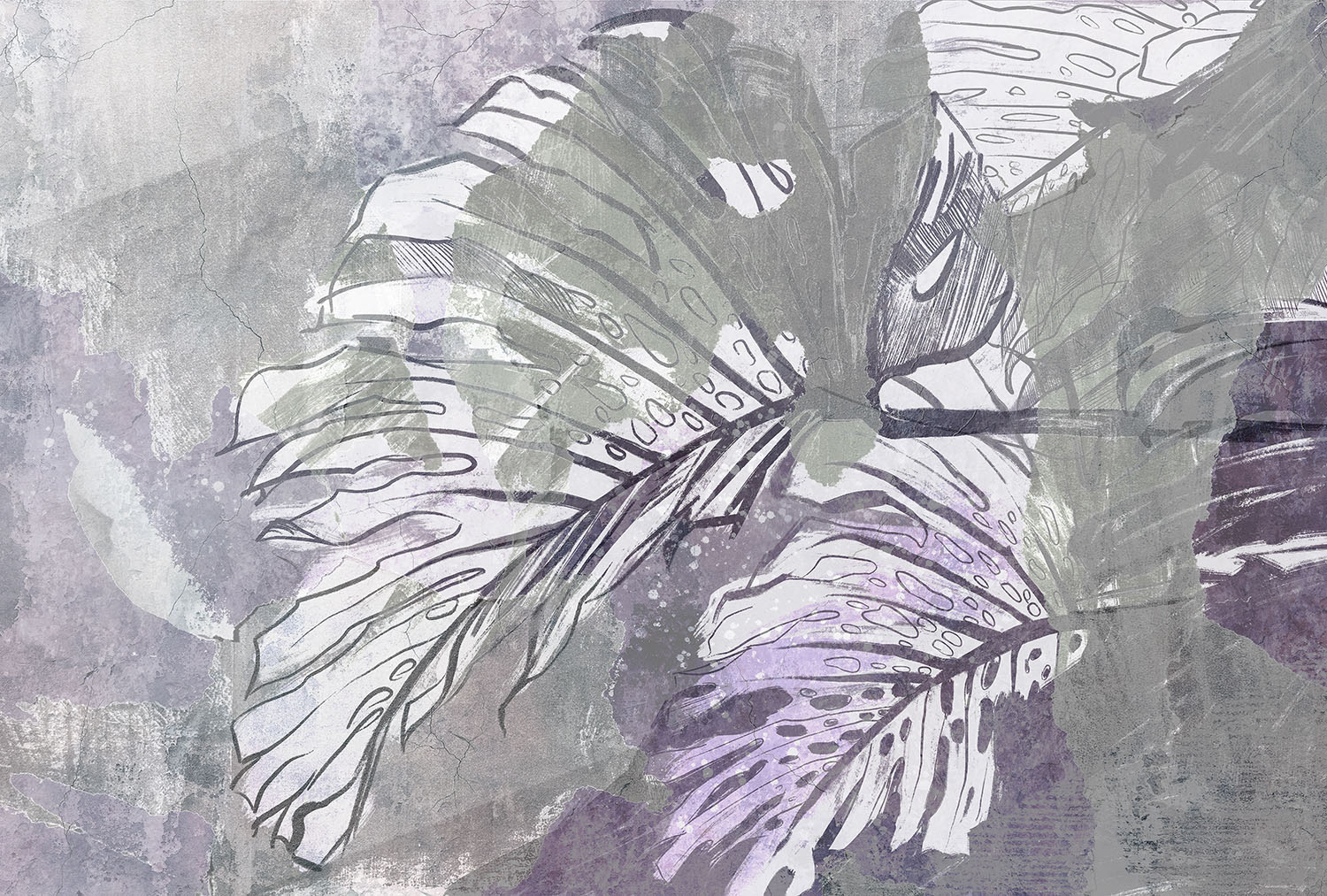 Фотообои F-153 "Крупные листья на бетоне гранж" 400х270