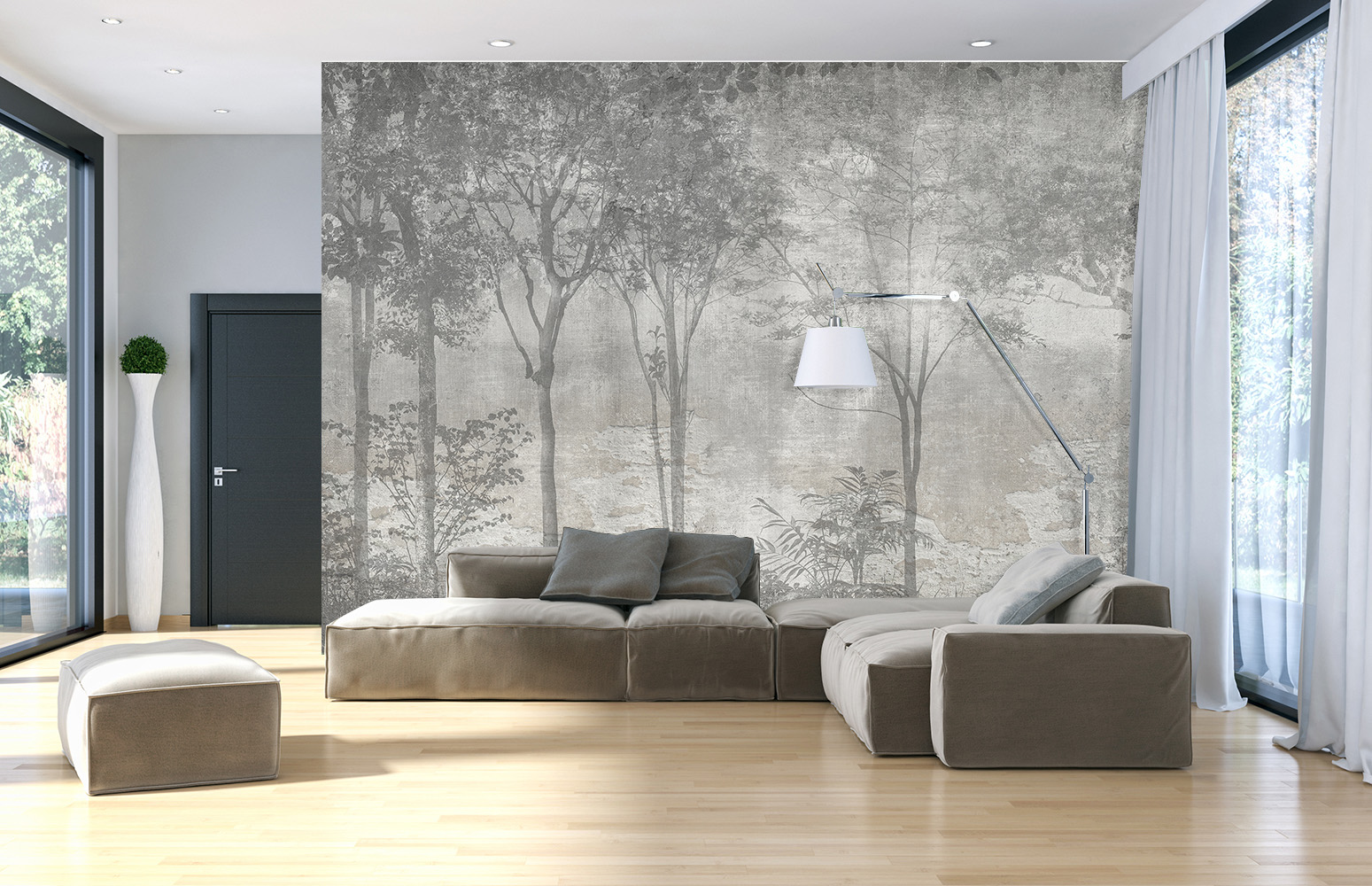 Фотообои "Лес на бетонной стене-3, 500х270"