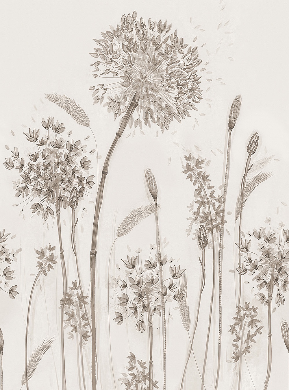 Описание Фотообои "Одуванчики рисунок (повторяющиеся) 200х270"