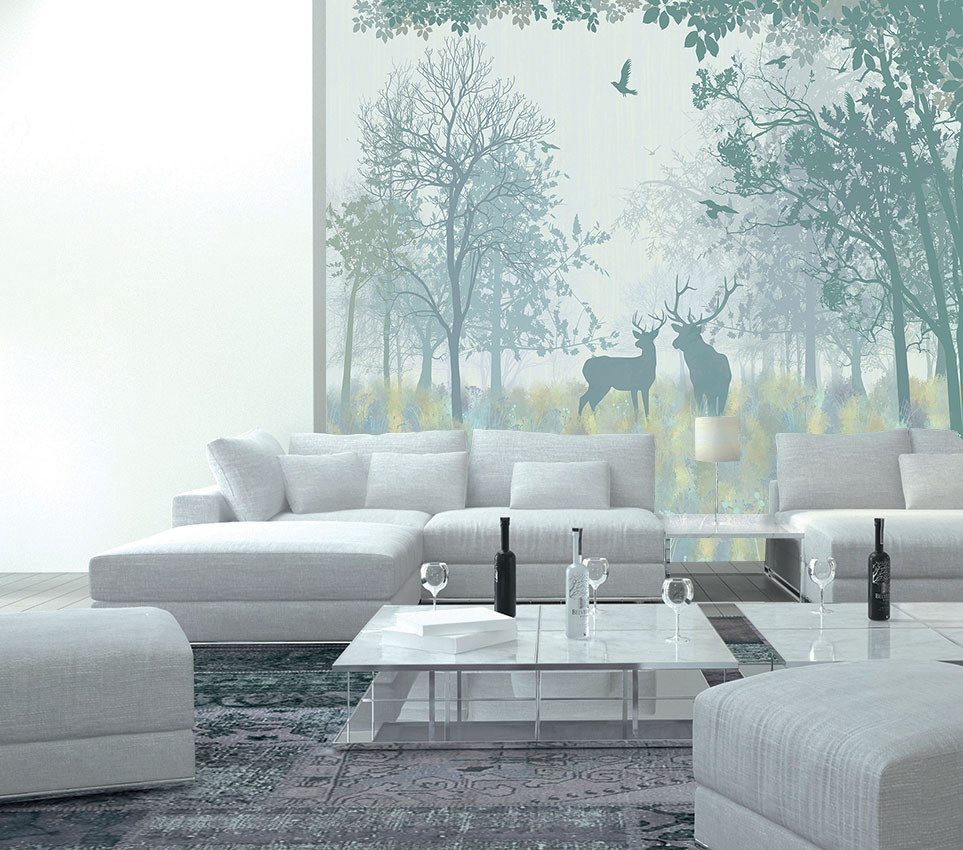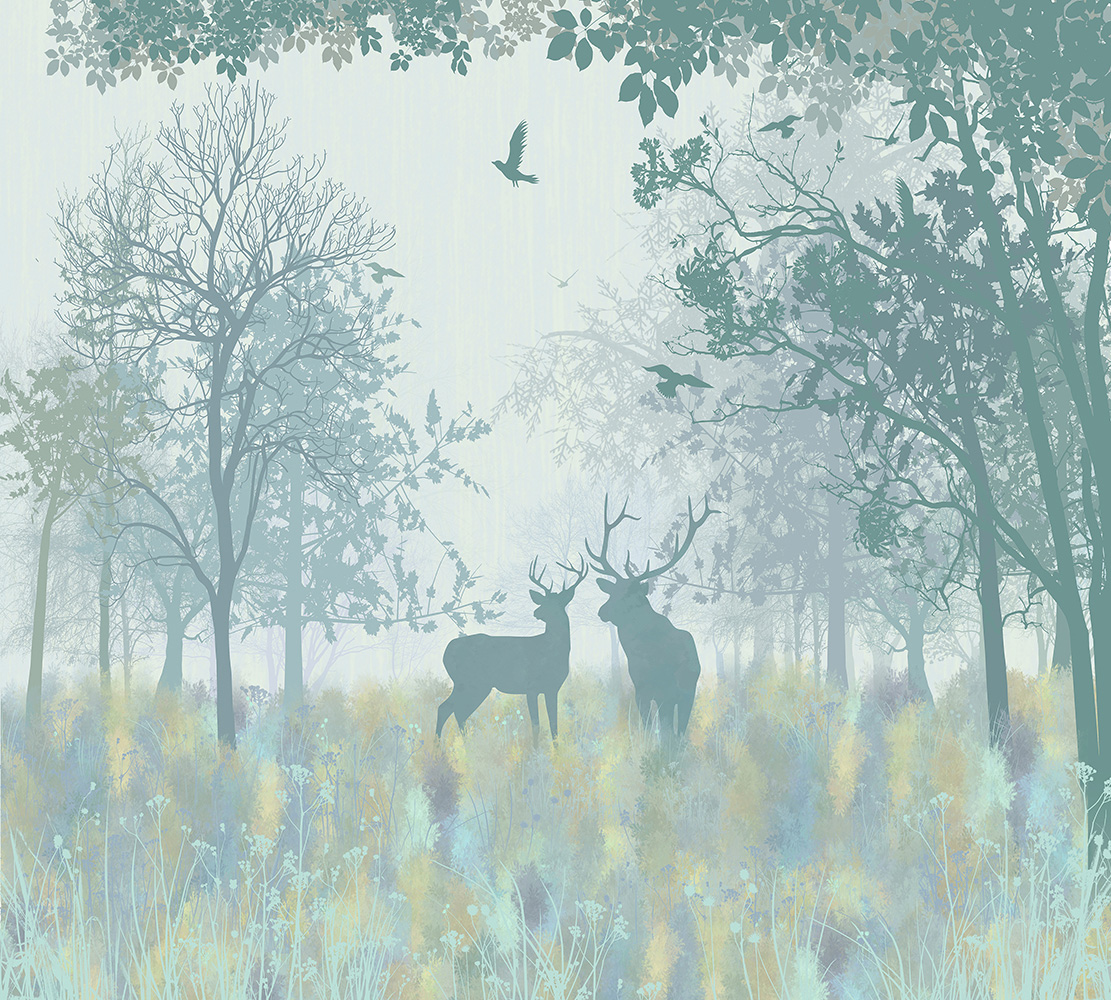 Наклеивайте на стену в очерёдности указанной на этикетке. Приложите фрагмент к стене и аккуратно разгладьте, выровняв и отцентрировав полотно по разметке. Для разглаживания рекомендуется использовать прижимной резиновый валик для обоев. Остатки клея удалите влажной тканью, излишки полотна срежьте острым ножом по линейке. Не допускается использование металлических и пластиковых шпателей! Следующий фрагмент наклейте встык. Аккуратно разгладьте стыки полотен без сильного нажима и трения, чтобы не повредить края.Фотообои Z-384 "Олени в сказочном саду" 300х270 - Характеристики