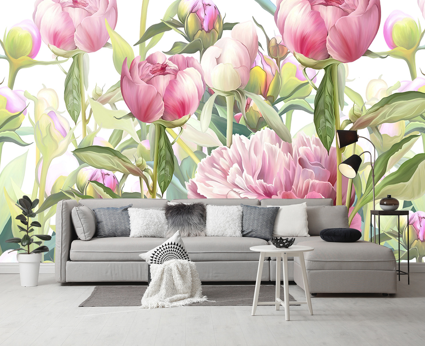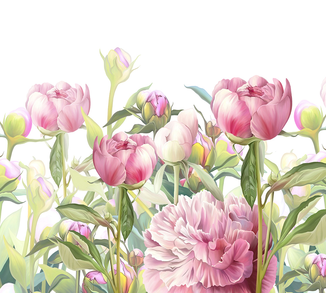Фотообои Z-347 "Розовые пионы рисунок" 300х270