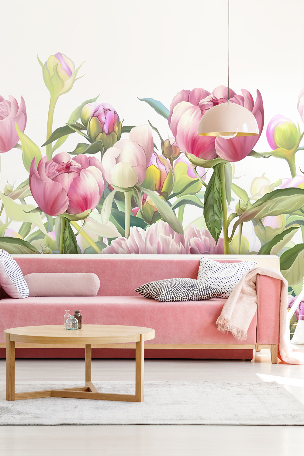 Описание Фотообои Z-347 "Розовые пионы рисунок" 300х270