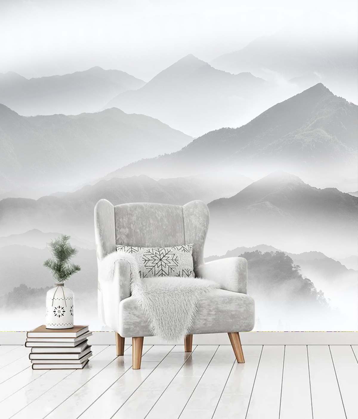 Фотообои T-078 "Горы в тумане чб" 300х270 - Отзывы покупателей, пациентов, врачей