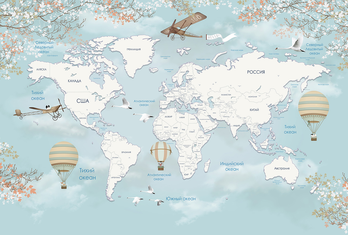 Фотообои T-125 "Карта мира с шарами" 400х270 - Отзывы покупателей, пациентов, врачей