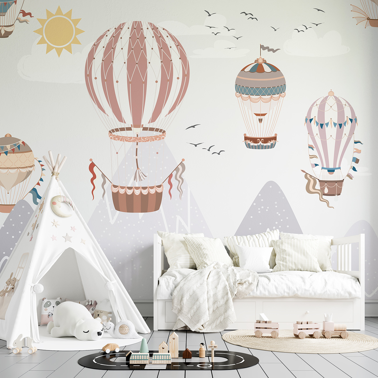 Описание Фотообои T-335 "Шары на фоне гор 3" 300х270